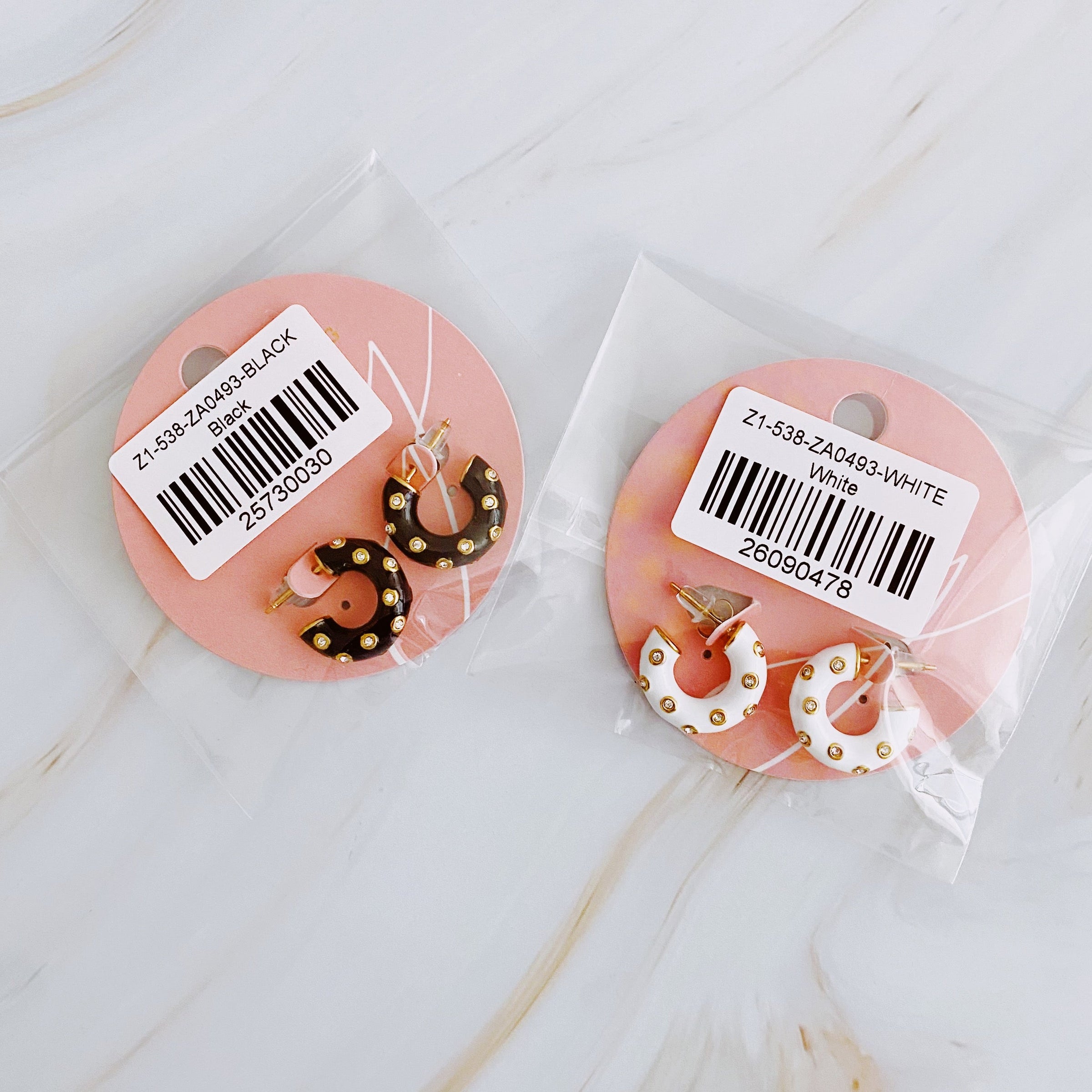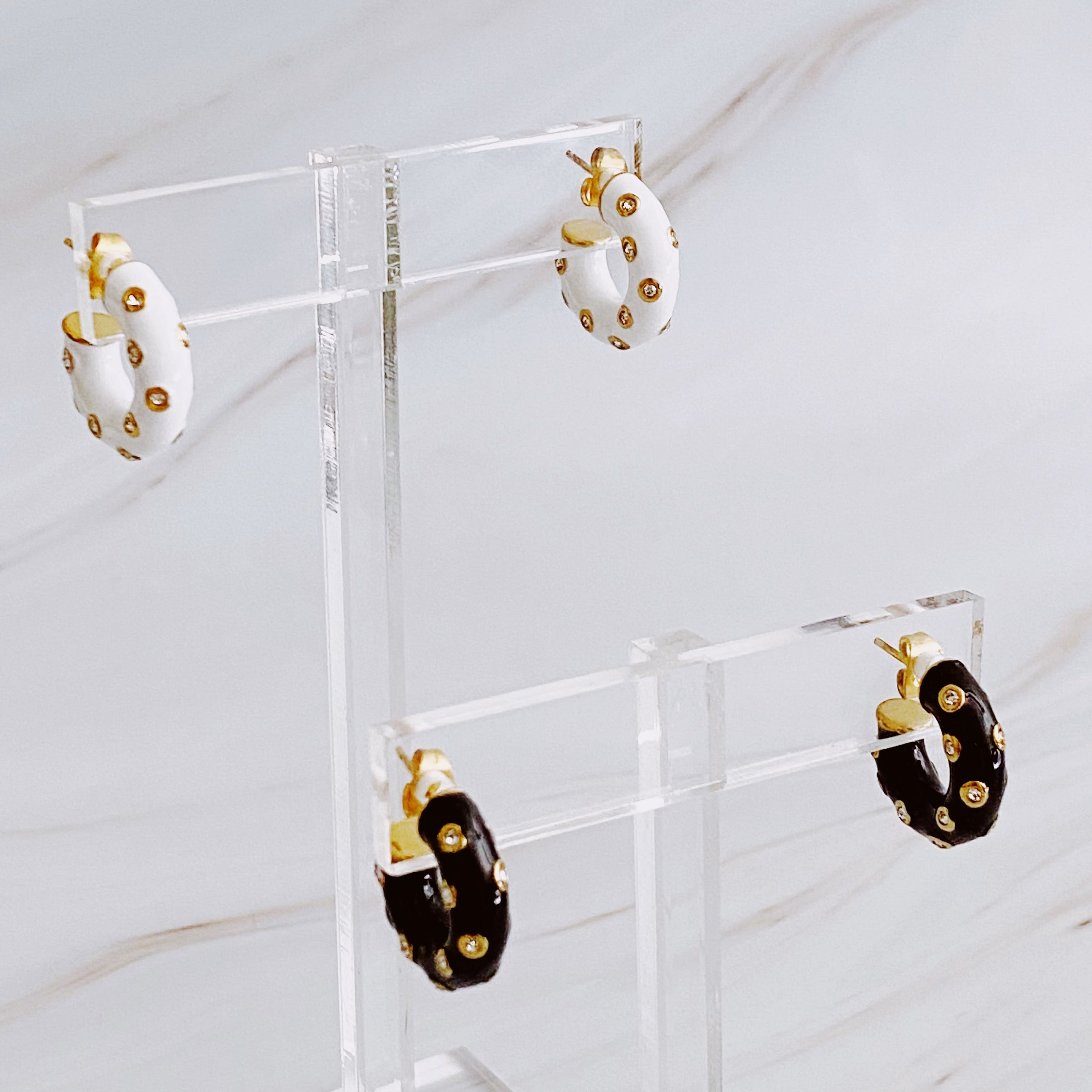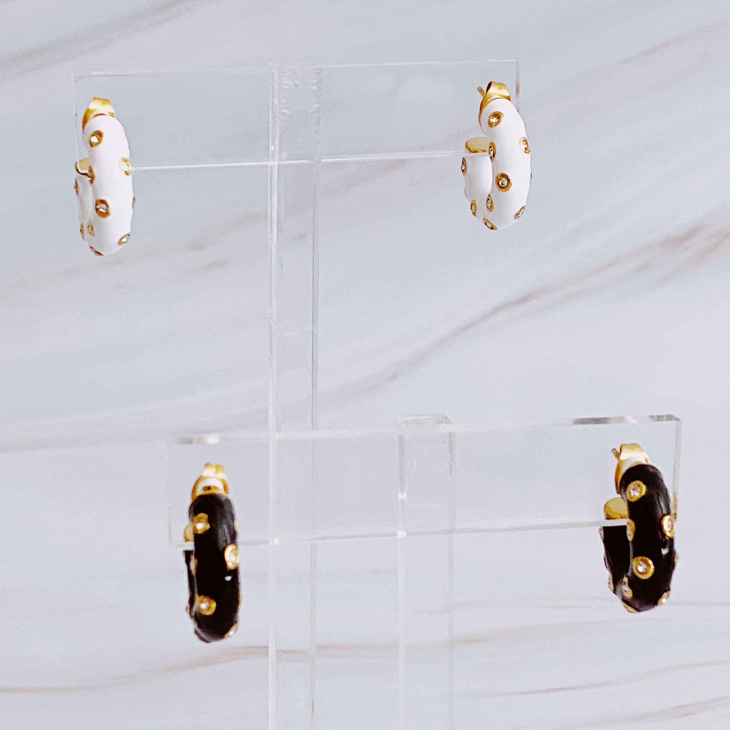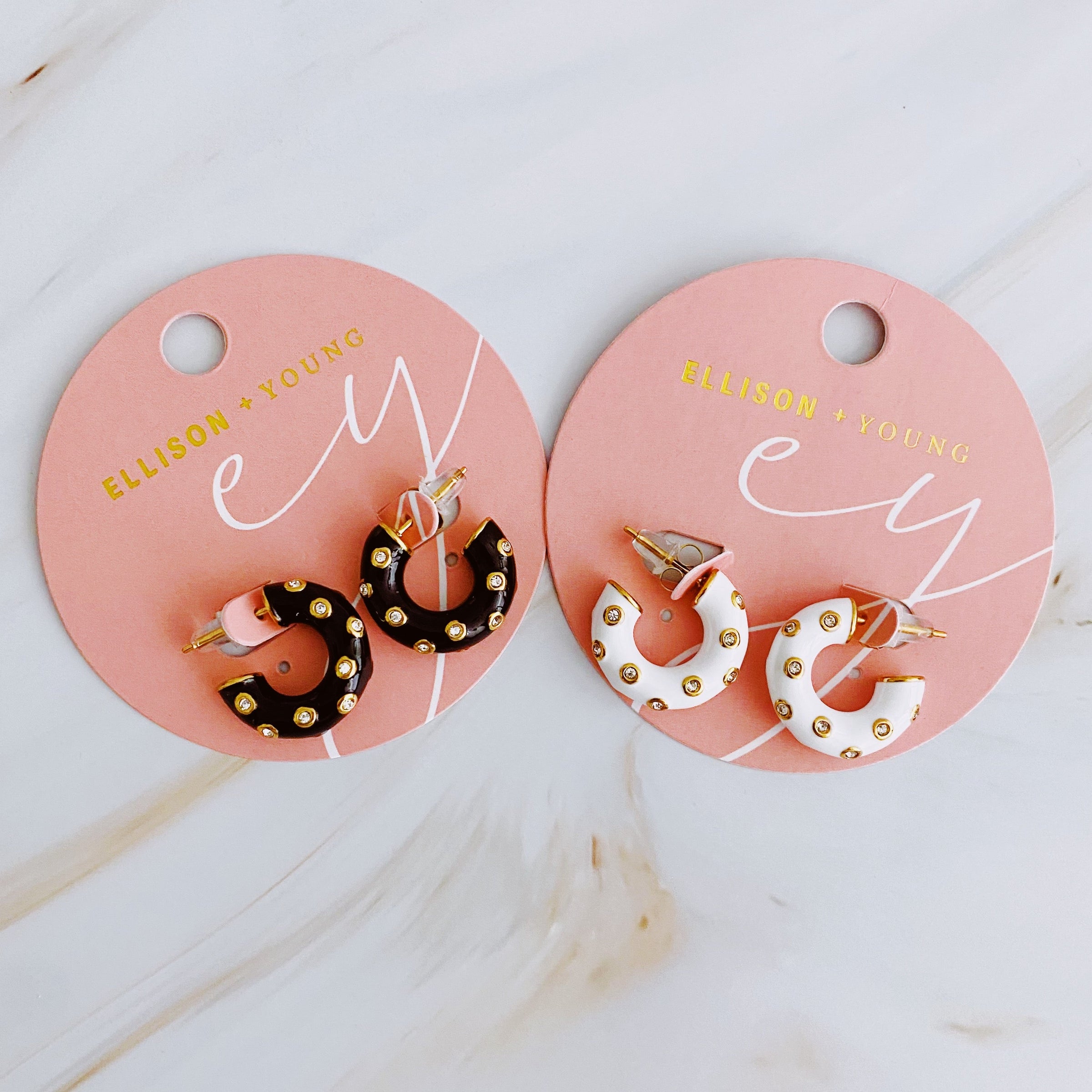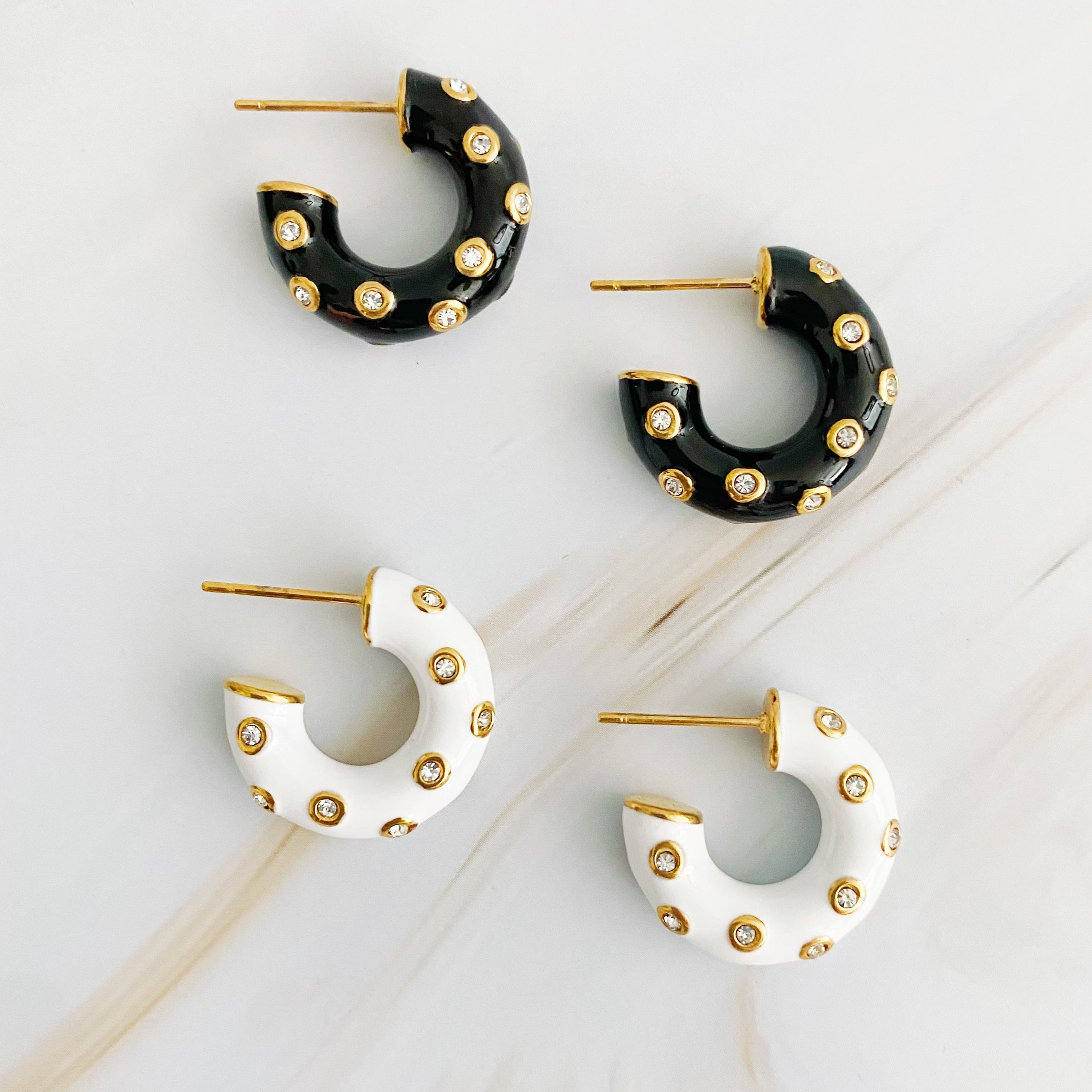 Adorn yourself with these stunning Jeweled Candy Everyday Hoop Earrings. Crafted from enamel and bedazzled with sparkling jewels, these earrings are the perfect size for everyday wear — great for casual looks and special occasions alike.