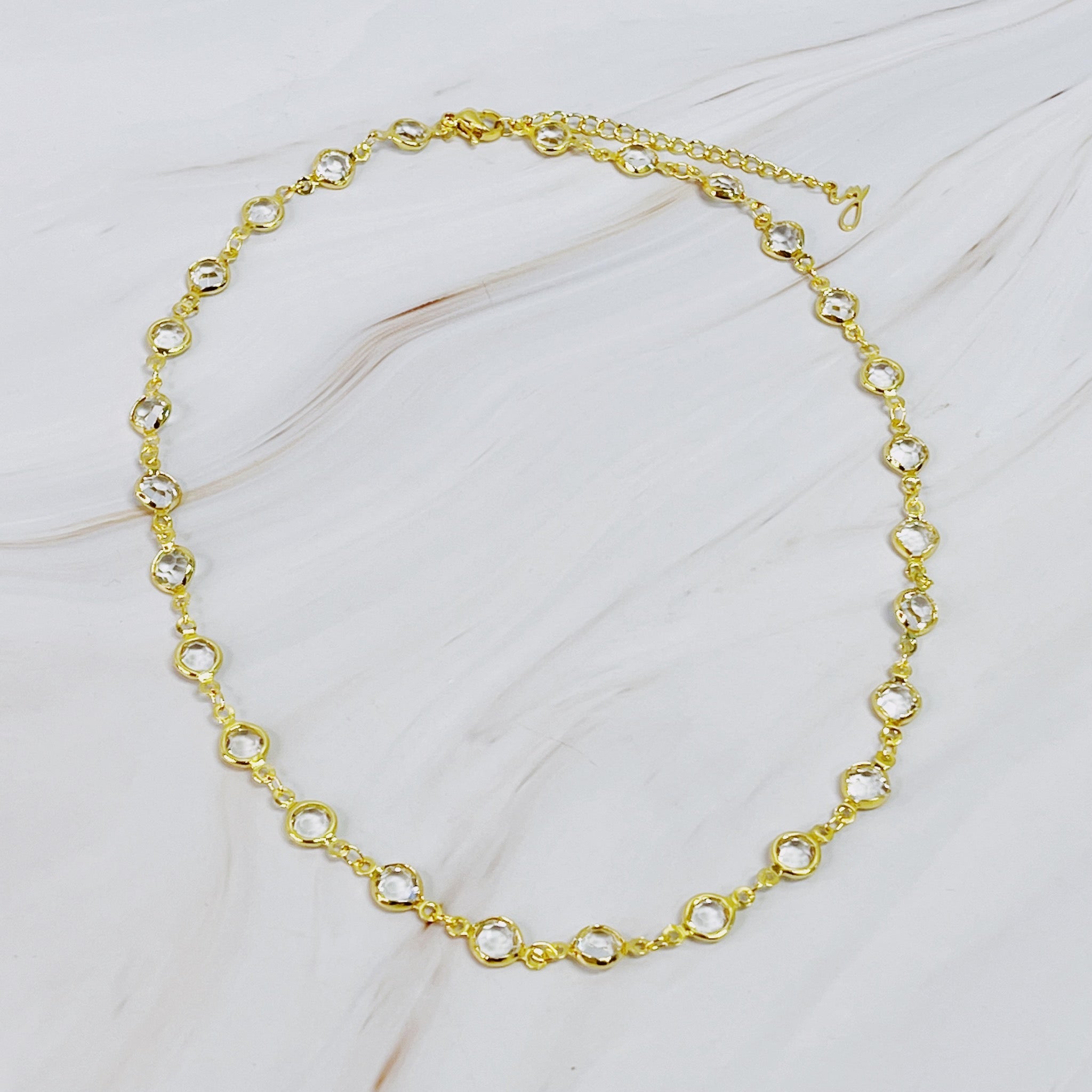 This versatile necklace showcases lovely jewels and a dainty design, perfect for any occasion. With its sparkle and shine, it's sure to add a touch of elegance to any outfit.