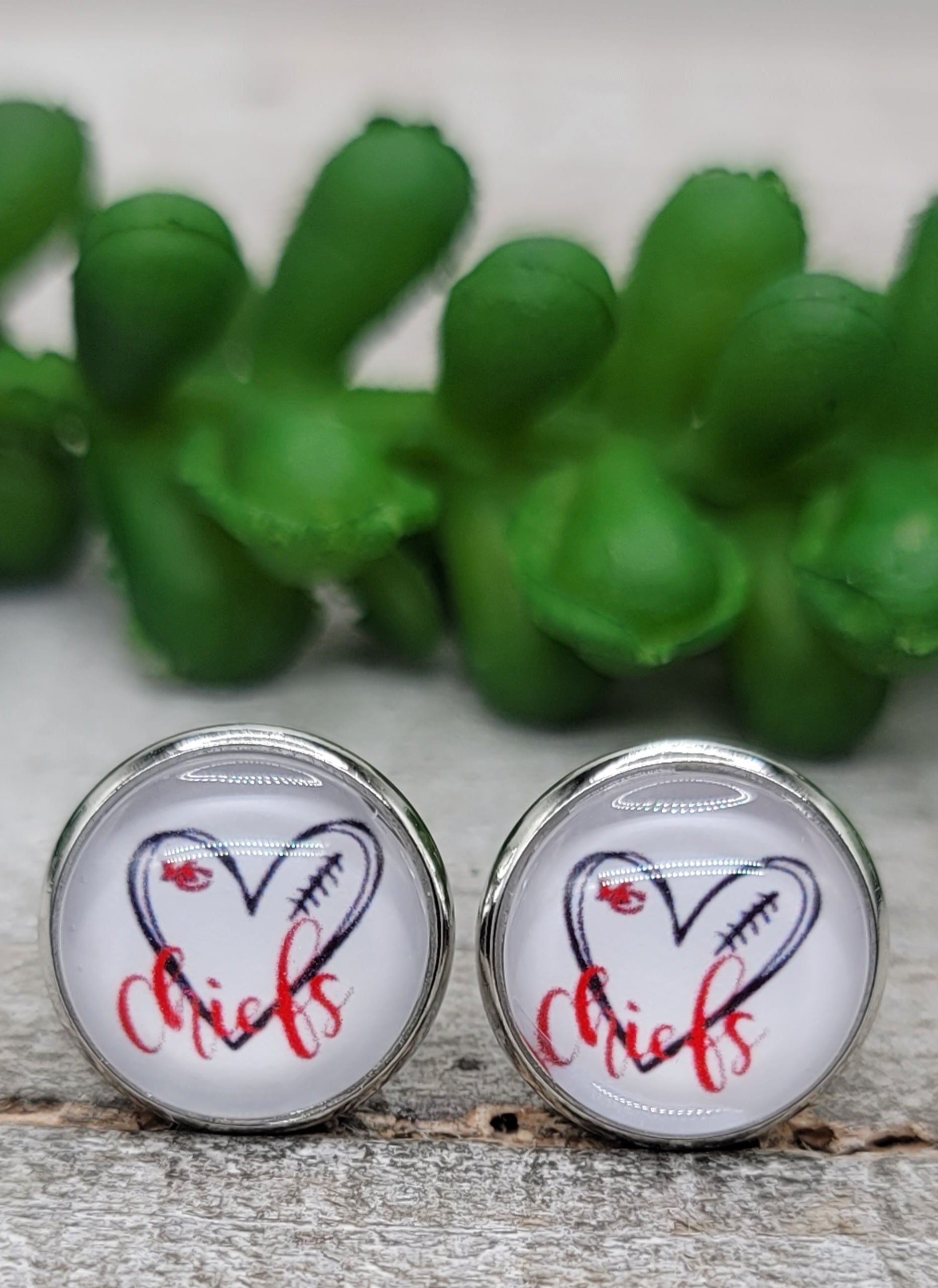 KC Chiefs Football - Heart || 12mm Glass Stud Earrings || Hypoallergenic