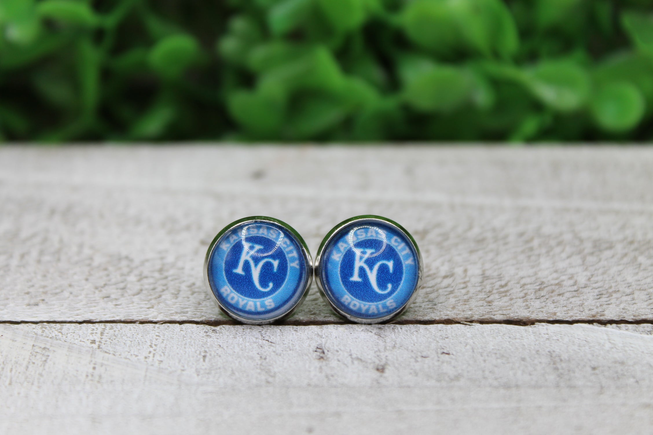 KC Royals Baseball Circle 12mm Glass Stud Earrings