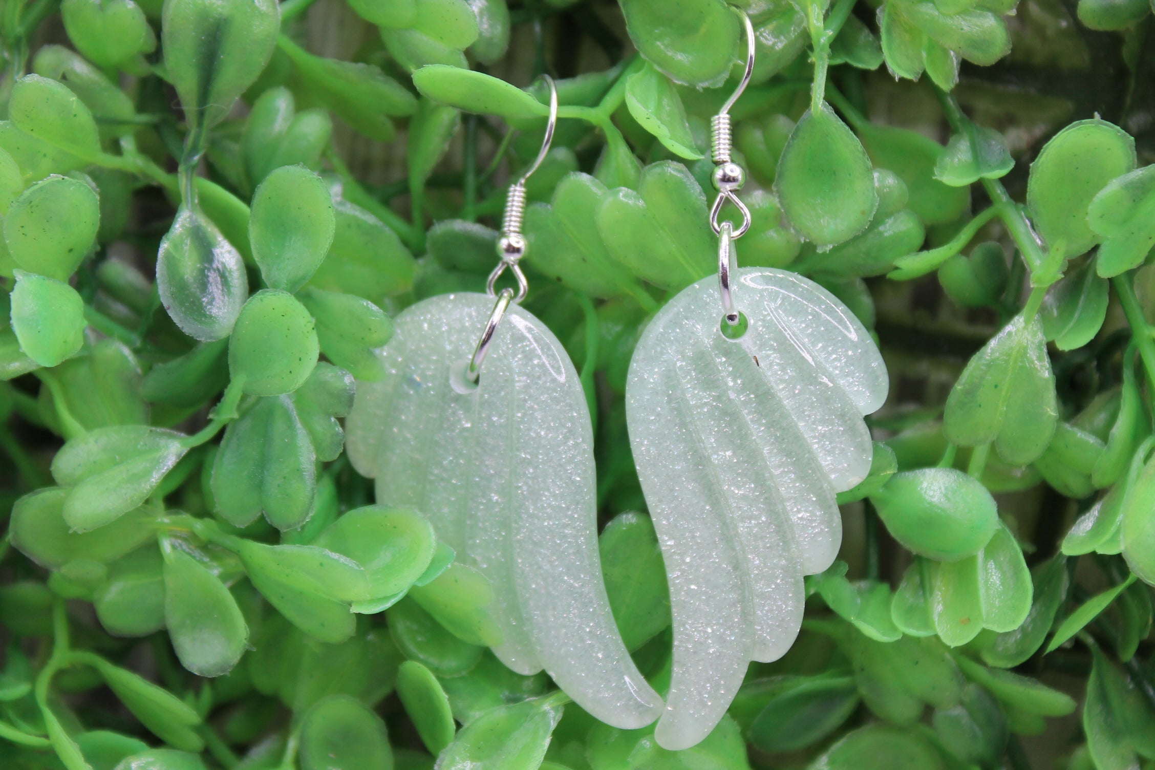 Light Green Sparkle Angel Wings • Dangle Earrings