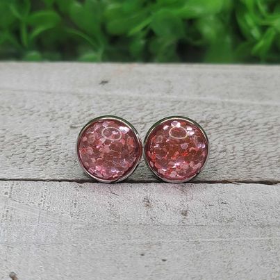 Light Pink Confetti Dome Stud Earrings