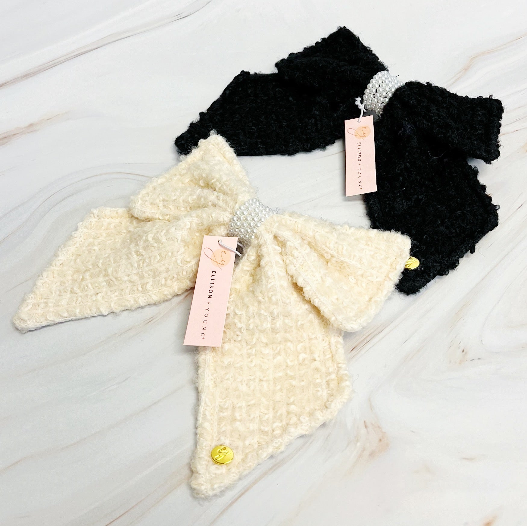 This classy piece features tweed fabric with a hint of pearl embellishment, adding a touch of elegance to any look. Expertly finished with lining on the back for a polished touch. Upgrade your style and add a touch of sophistication to your outfits.