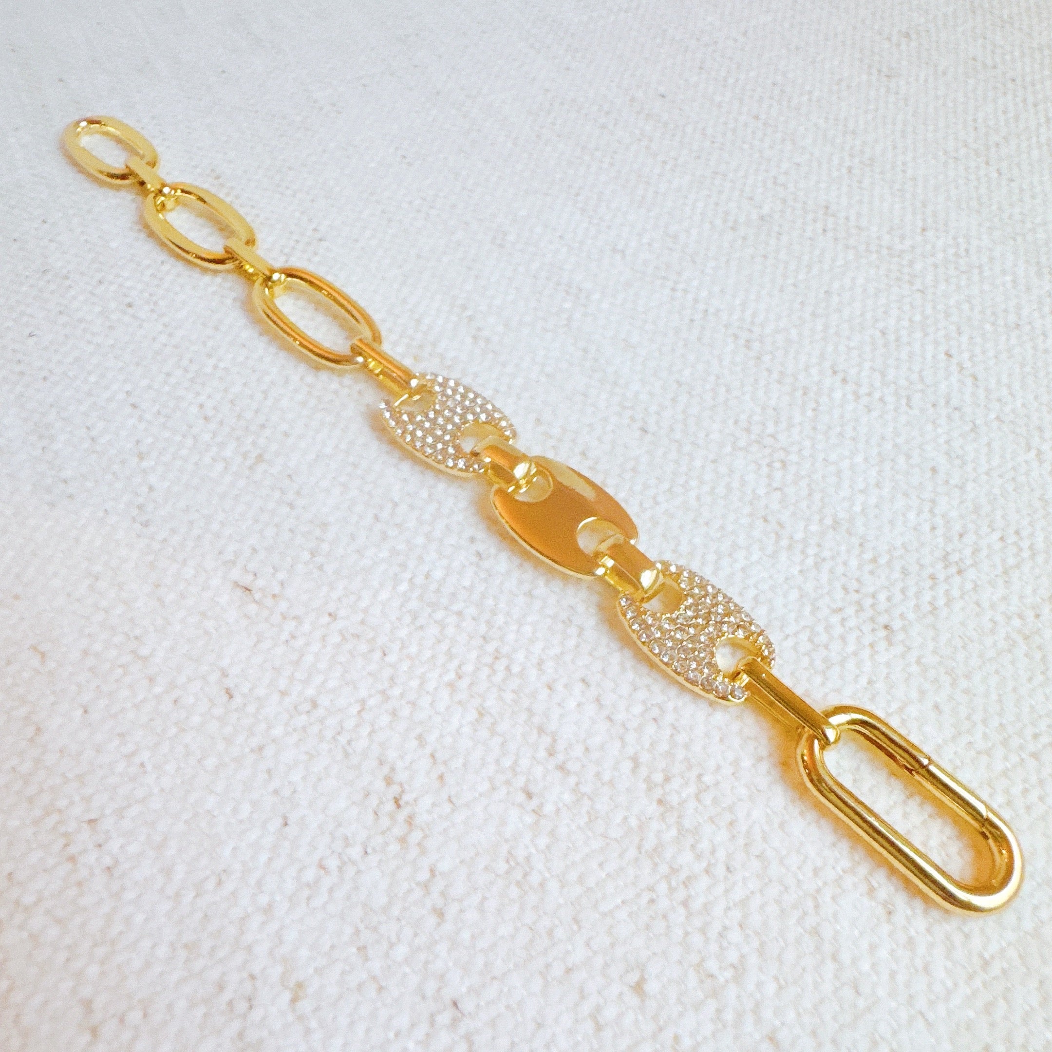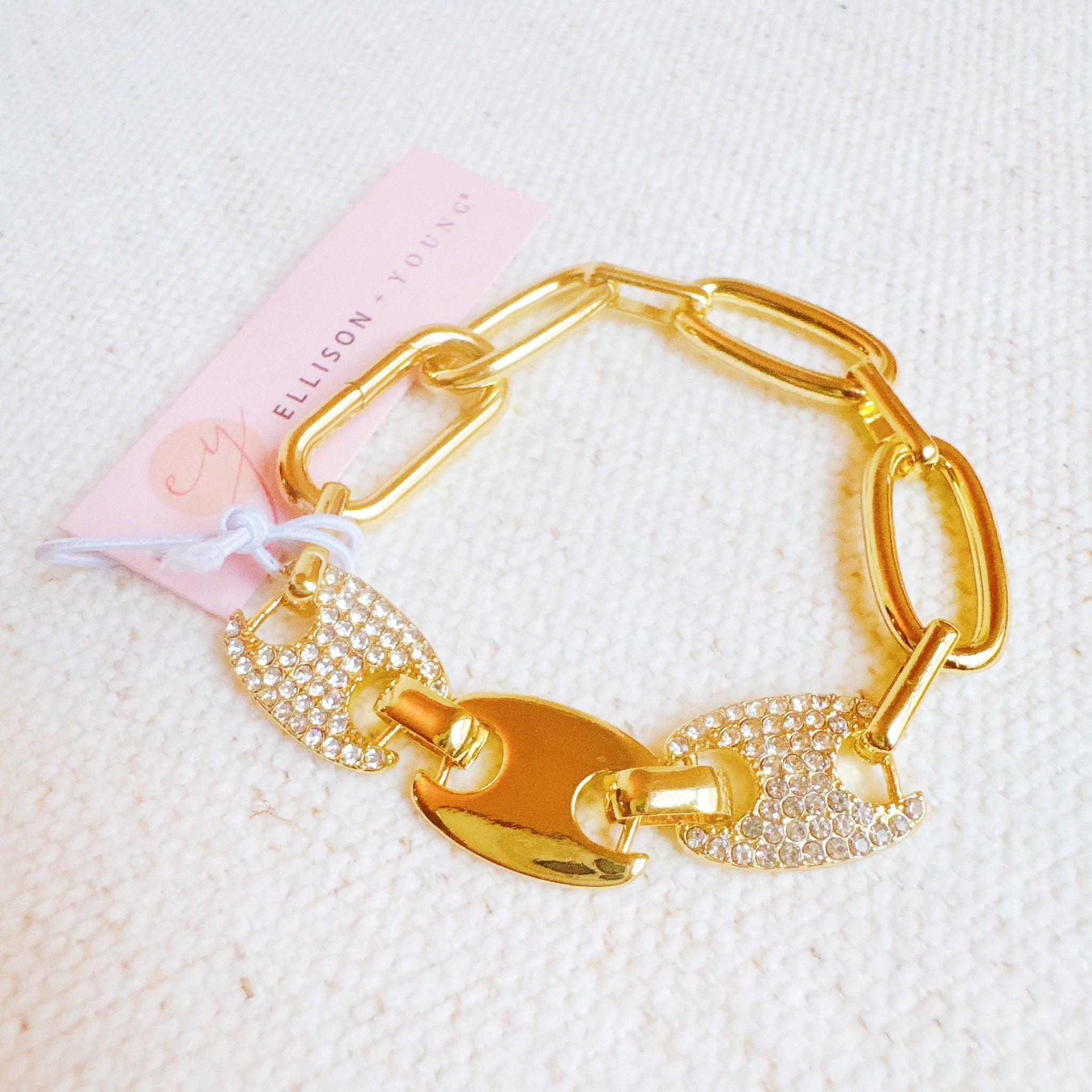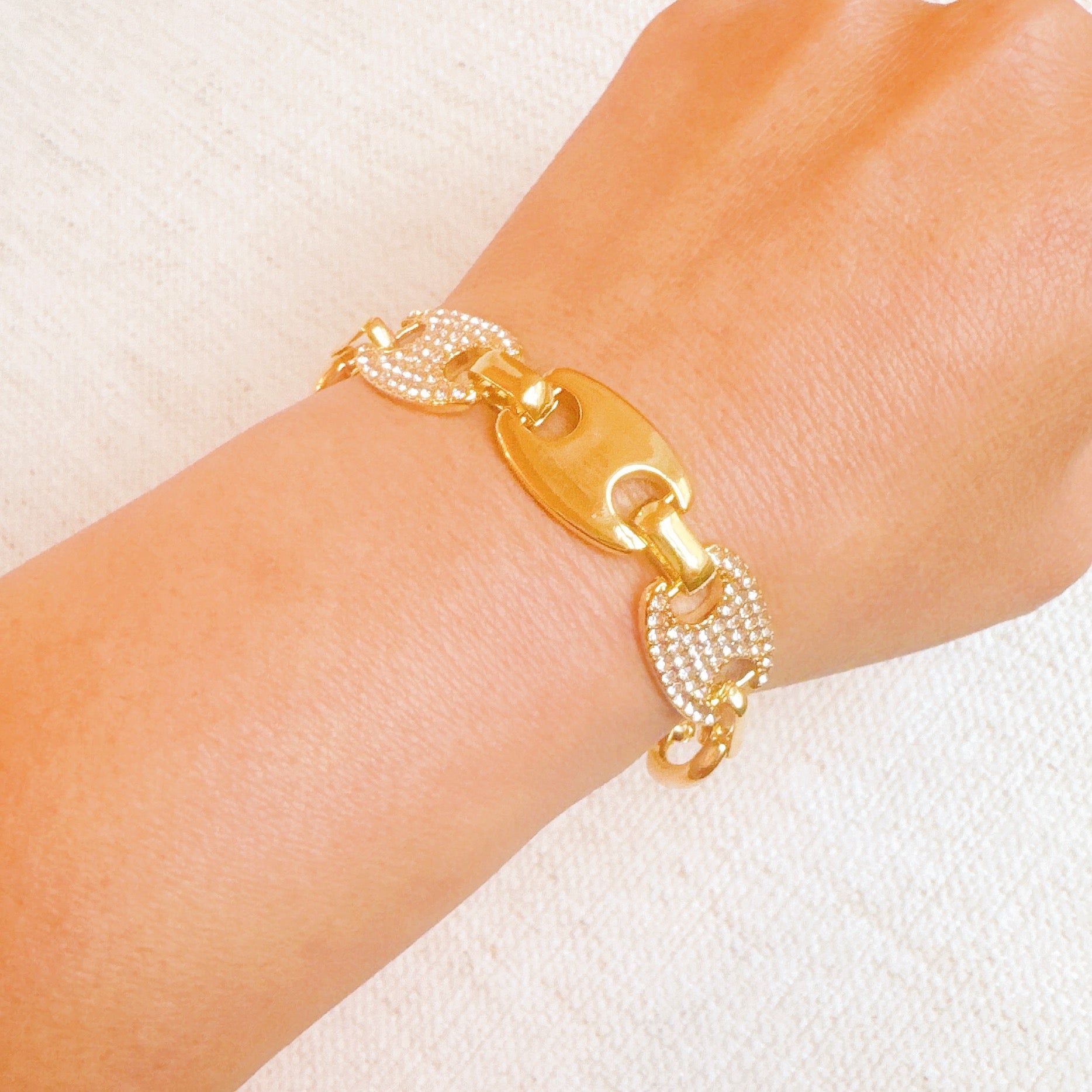 This modern bracelet features a unique paved bit design, perfect for adding a subtle touch of glam to any outfit. With its sleek and stylish look, it's the perfect accessory for any occasion. Elevate your style with the Majestic Paved Bit Bracelet.
