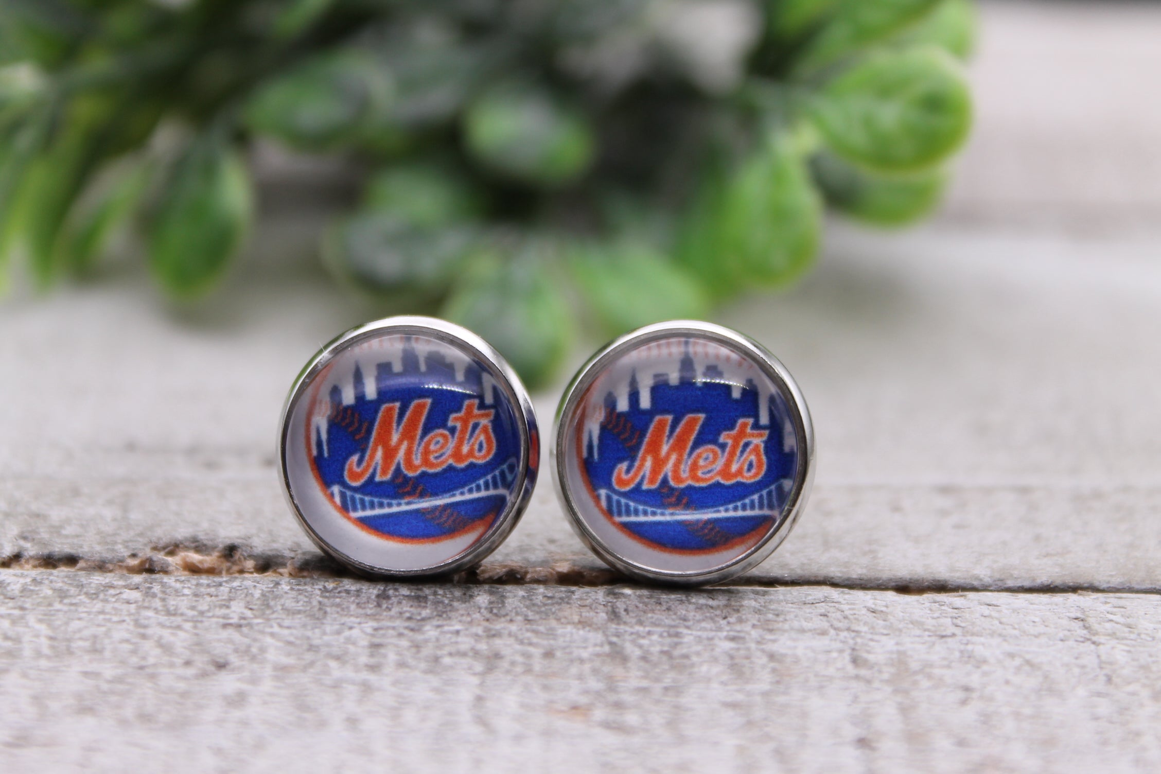 Mets Baseball || 12mm Glass Stud Earrings || Hypoallergenic