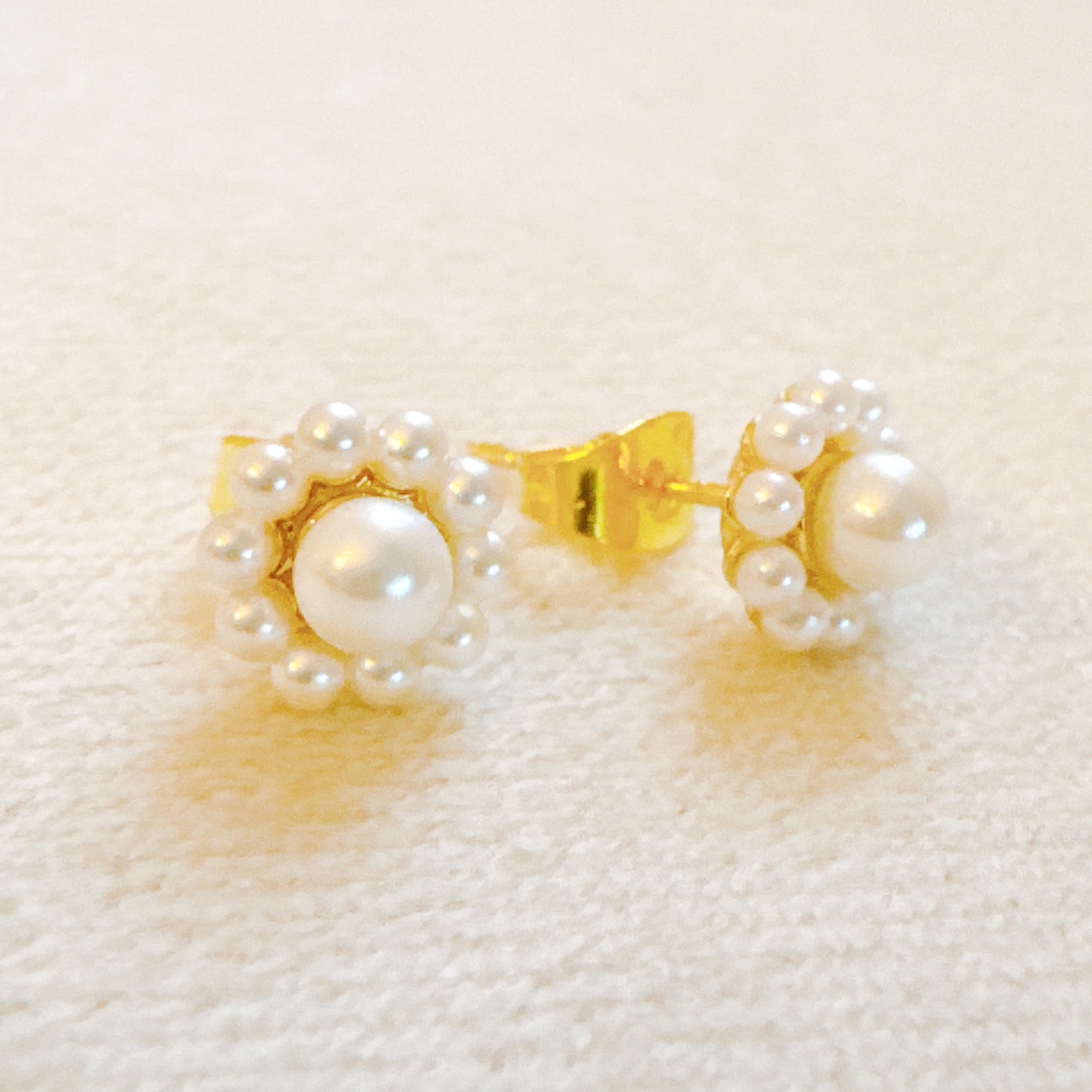 These stud earrings feature a beautiful and unique floral like design, adding a touch of elegance to any outfit. The mini flower and stud detailing makes them versatile for any occasion.