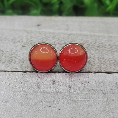 Orange and Red Split Shimmer Dome Stud Earrings