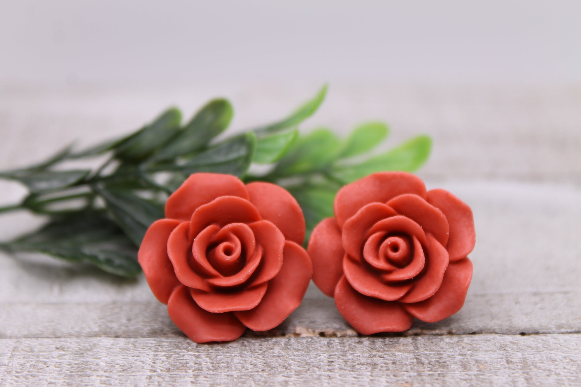 Orange Roses || 20mm Stud Earrings || Hypoallergenic