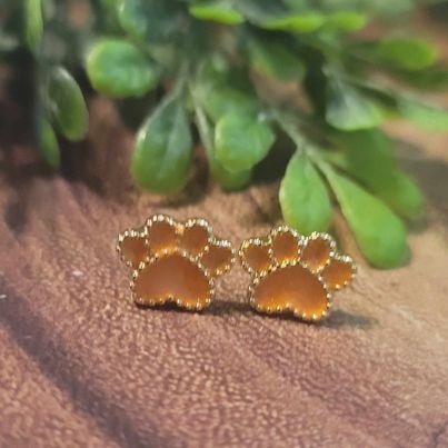 Orange Sparkle Marble Paw Prints | Stud Earrings