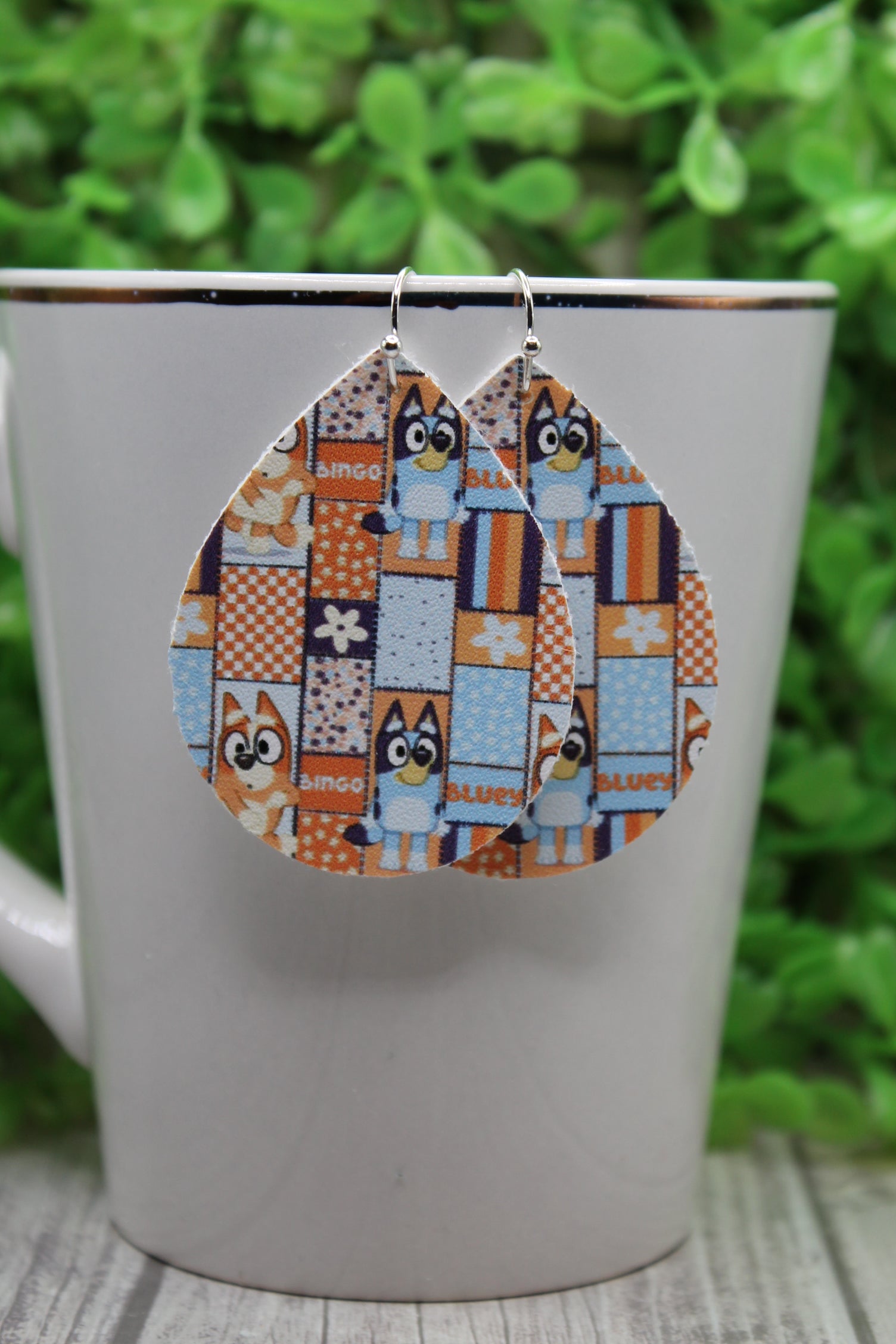 Patchwork Bluey • Mini Faux Leather Teardrop Dangle Earrings