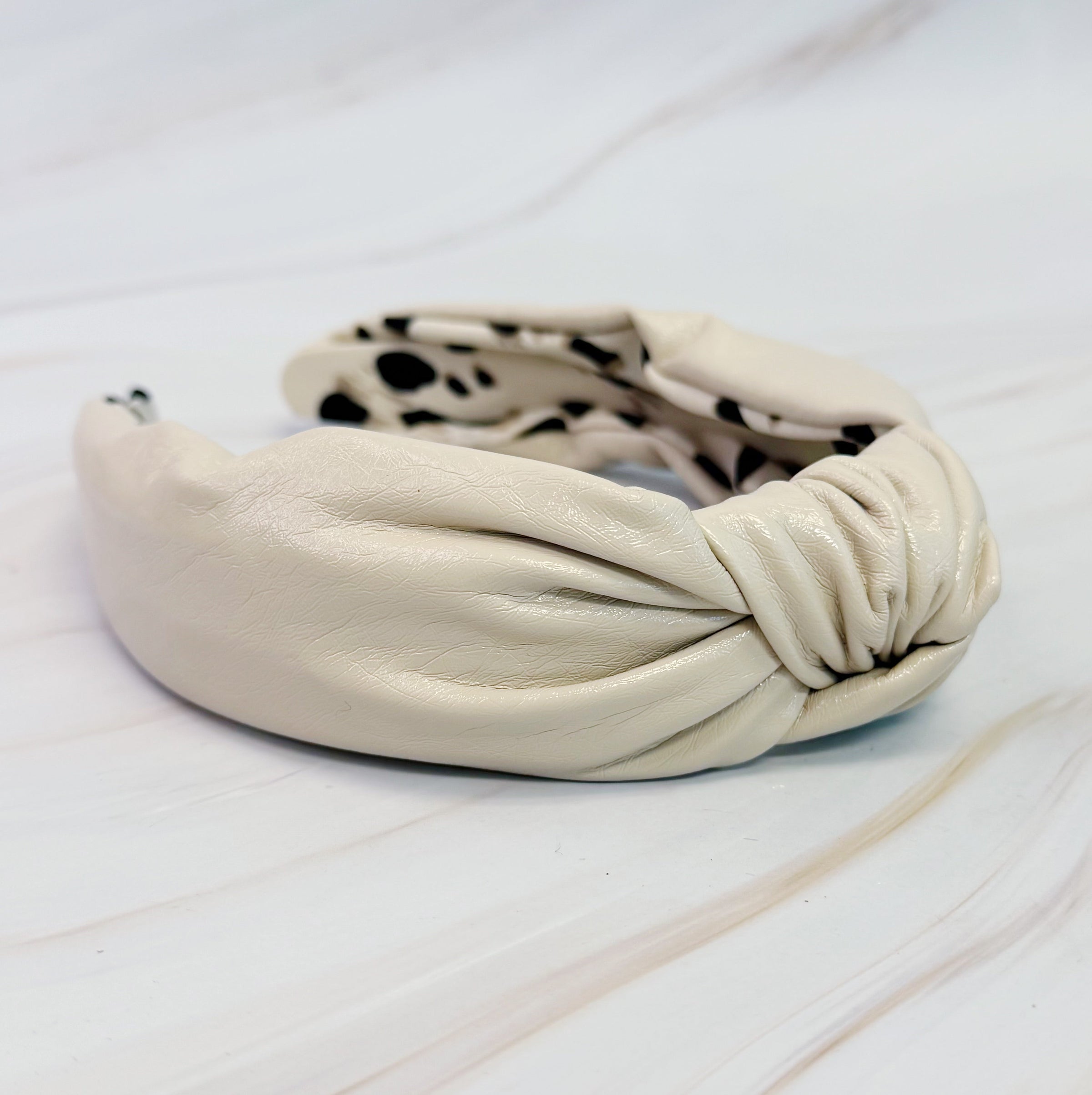 This headband is a chic and sophisticated accessory. The patent faux leather design adds a touch of luxury while the headband adds a classic and stylish touch to any outfit. Elevate your look with this elegant headband.