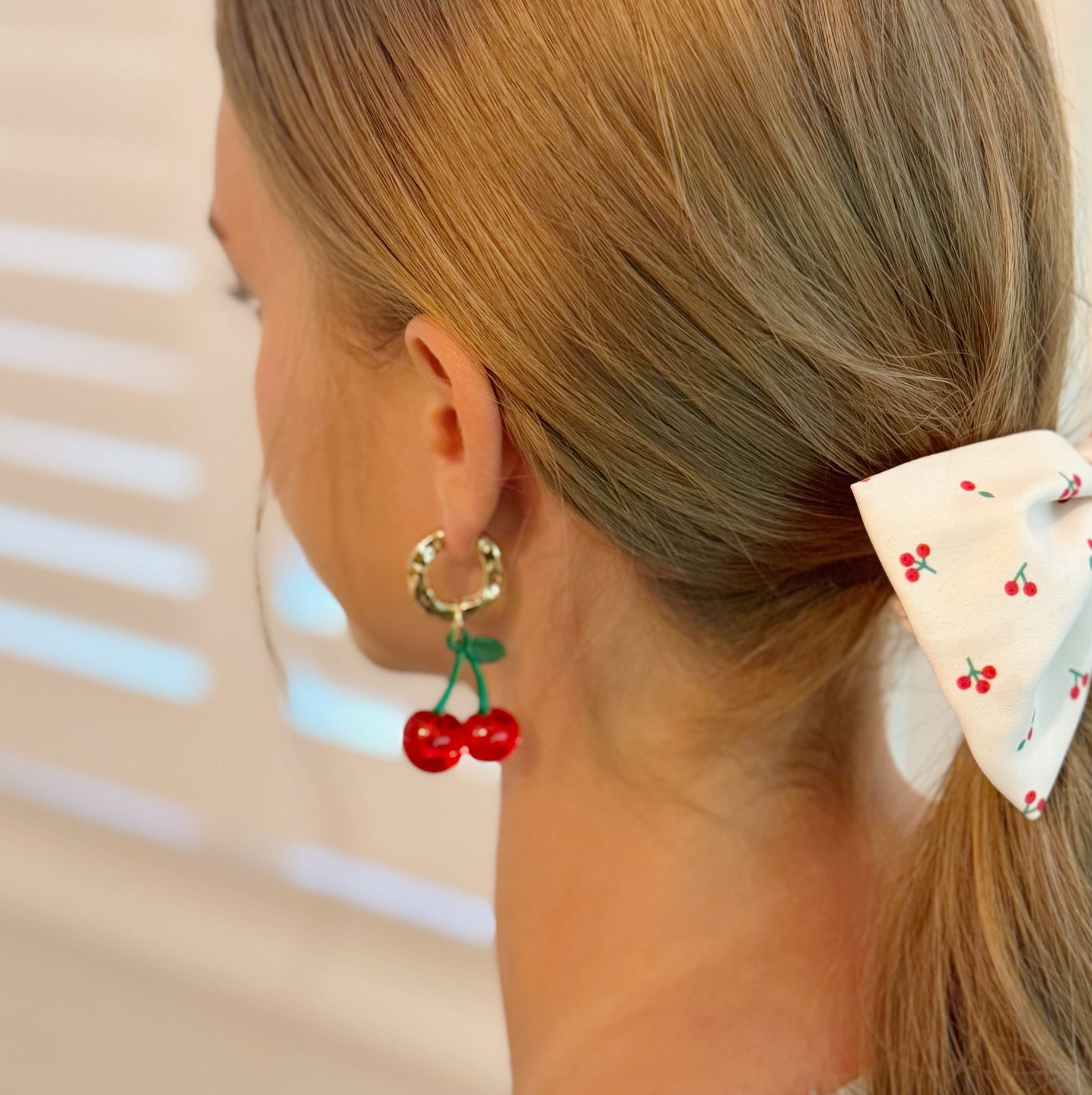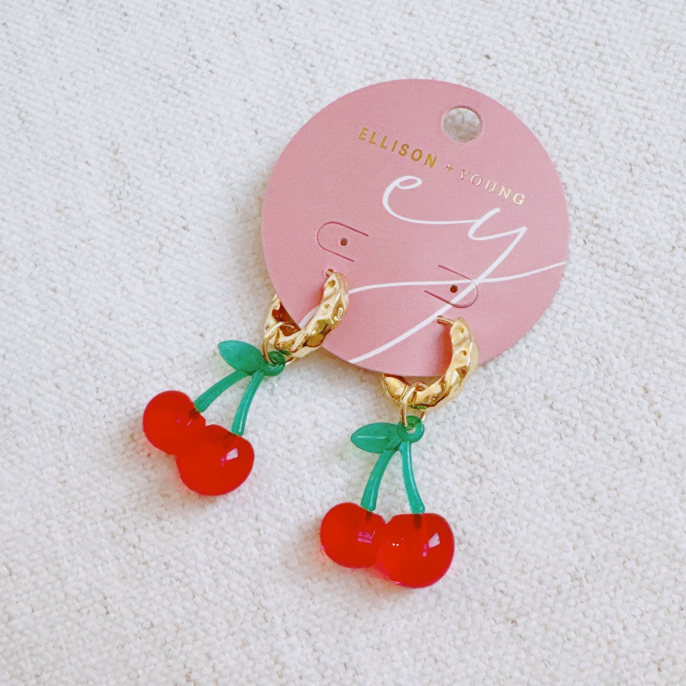Add a playful twist to your accessory game with the Pick Your Cherries Earrings. Featuring a charming cherry design and a glossy finish, these earrings bring a fun yet chic vibe to any look.