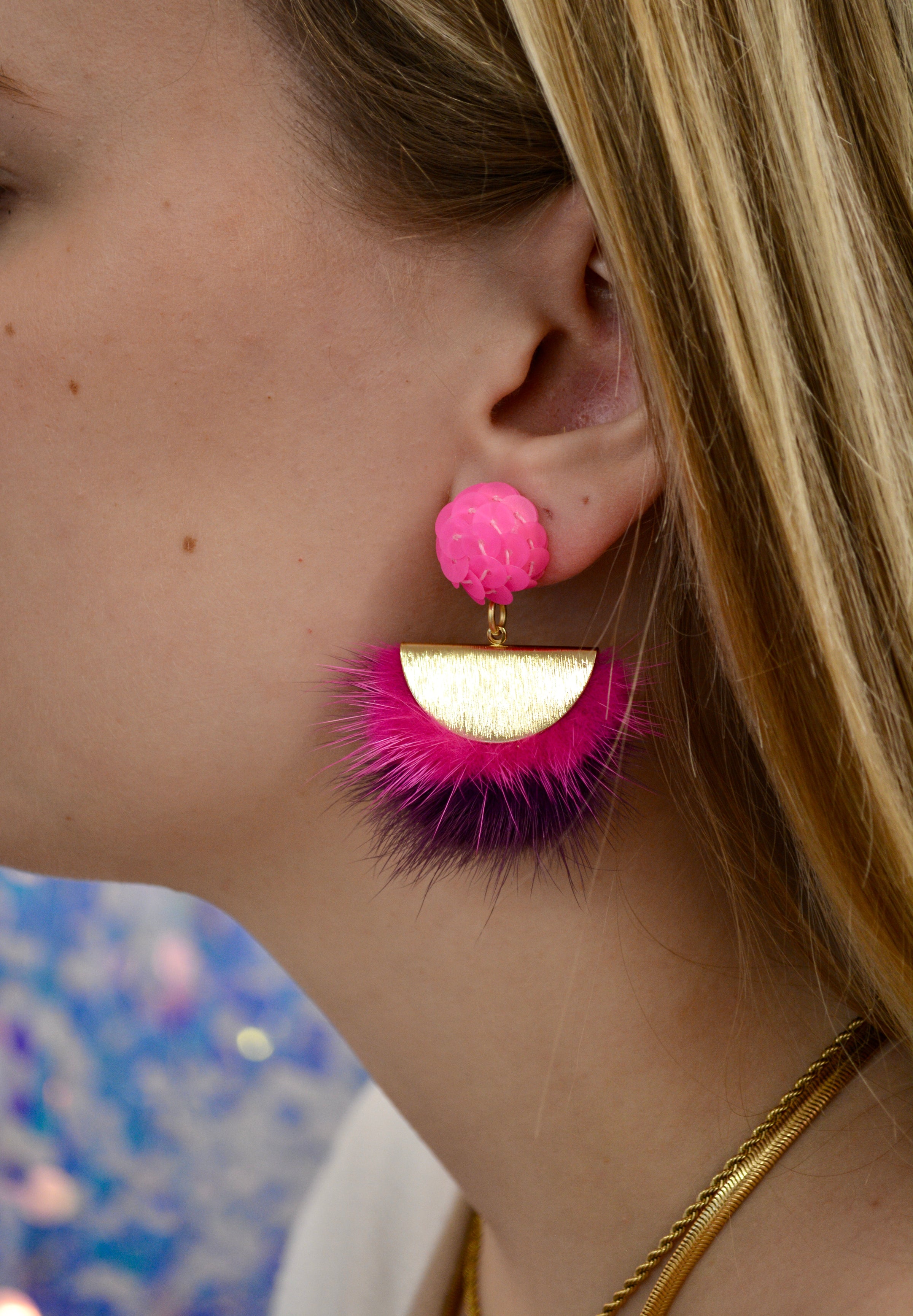 These pink Aurora Puff Earrings will give you a look that's out-of-this-world! If you're looking to make a statement, these earrings are sure to get you noticed. With their eye-catching color and texture, they'll light up the room like a sparkly aurora in an emerald sky.