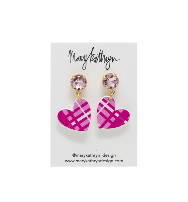 These earrings are a playful twist on a classic design, featuring pink checkered hearts. Add a touch of whimsy to any outfit with these quirky earrings! Perfect for those who don't take themselves too seriously.