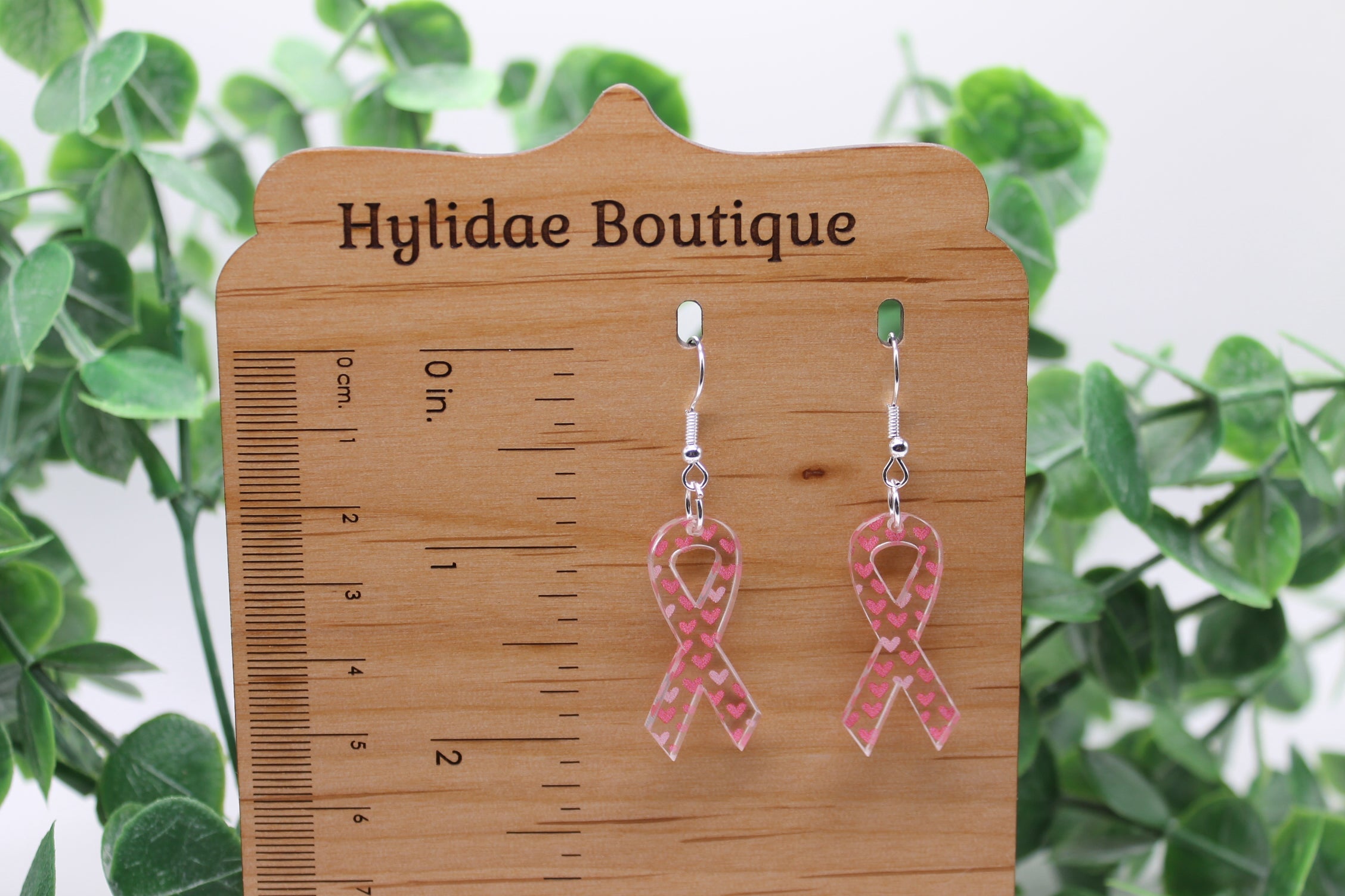 Pink Heart Ribbons Breast Cancer Awareness || Acrylic Dangle Earrings || Hypoallergenic