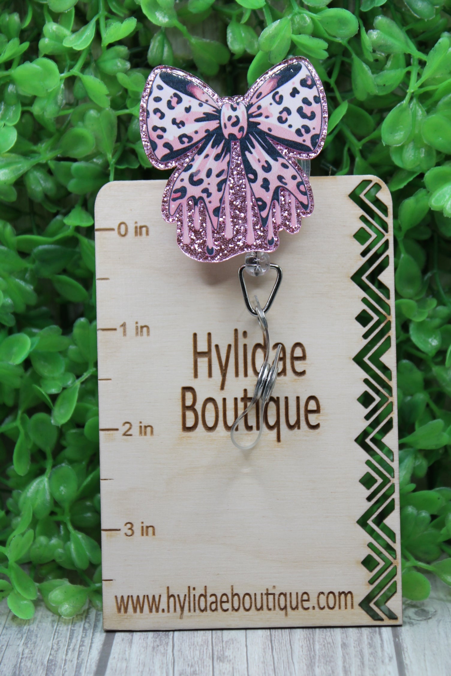 Pink Leopard Dripping Bow Badge/ID Holder Reel