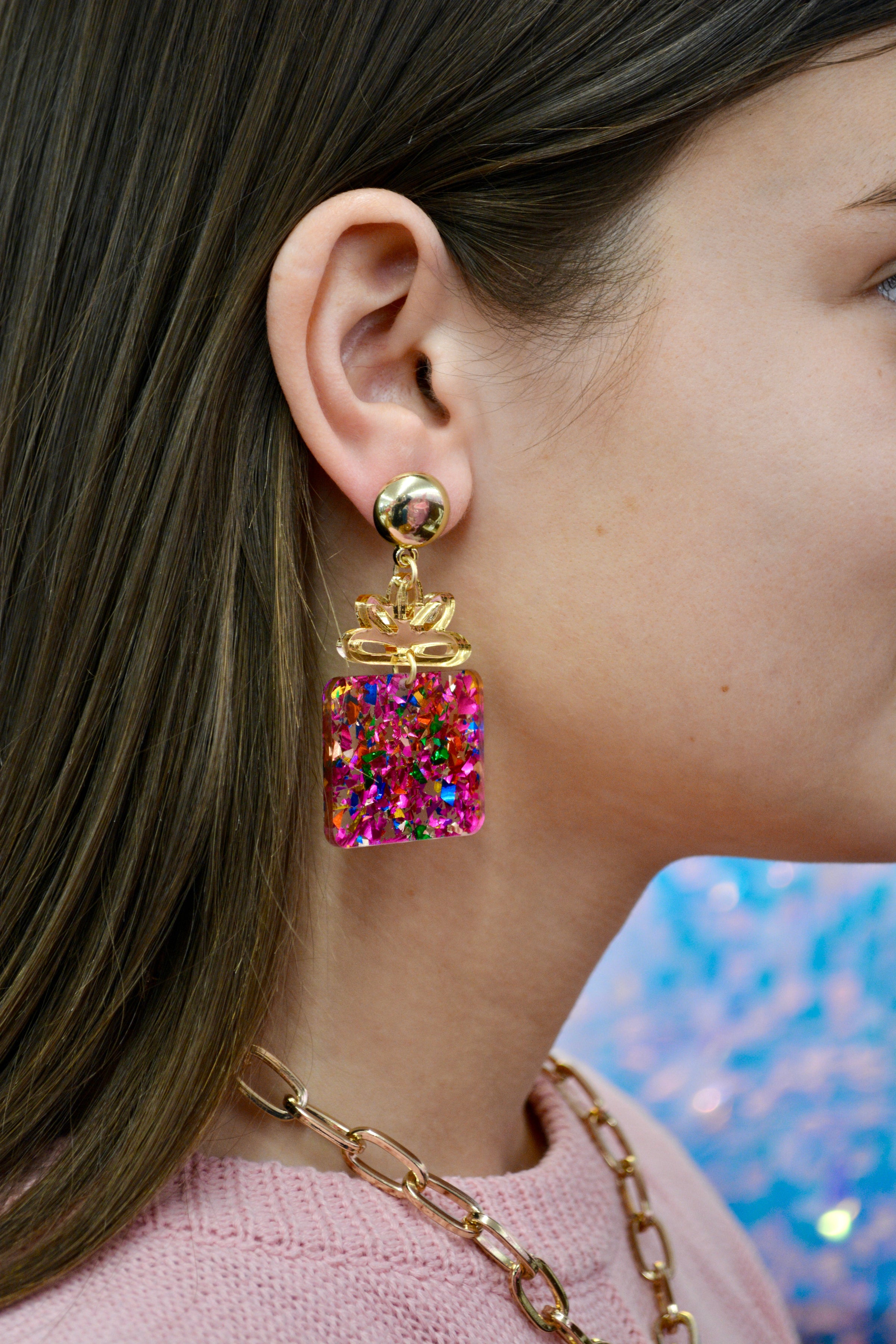"Add a pop of pink to any outfit with our Pink Perfect Present Earrings! These playful earrings are sure to make a statement and bring a touch of whimsy to your look. Perfect for a fun night out or a unique gift for a special someone. (Present yourself with these earrings today! Pun intended.)"