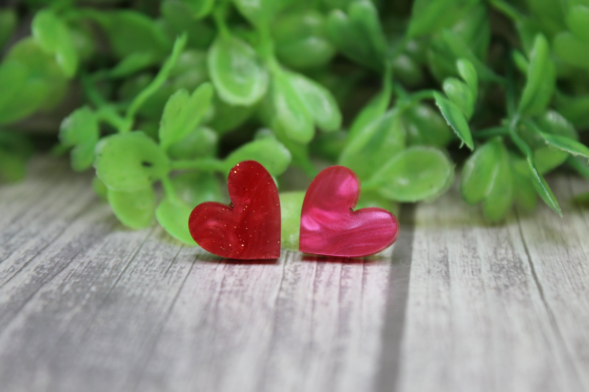 Pink Shimmer Heart • Stud Earrings