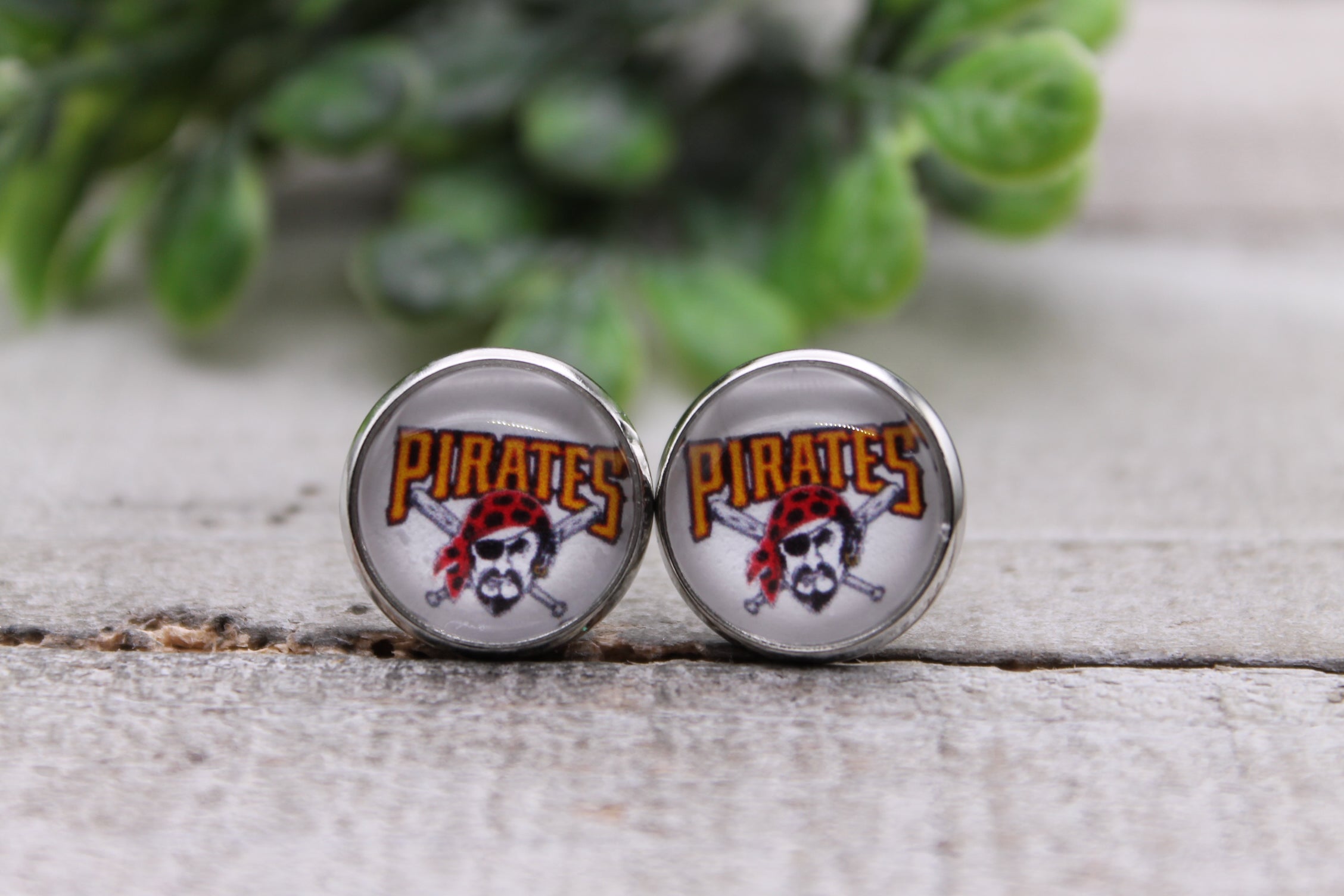 Pirates Baseball || 12mm Glass Stud Earrings || Hypoallergenic