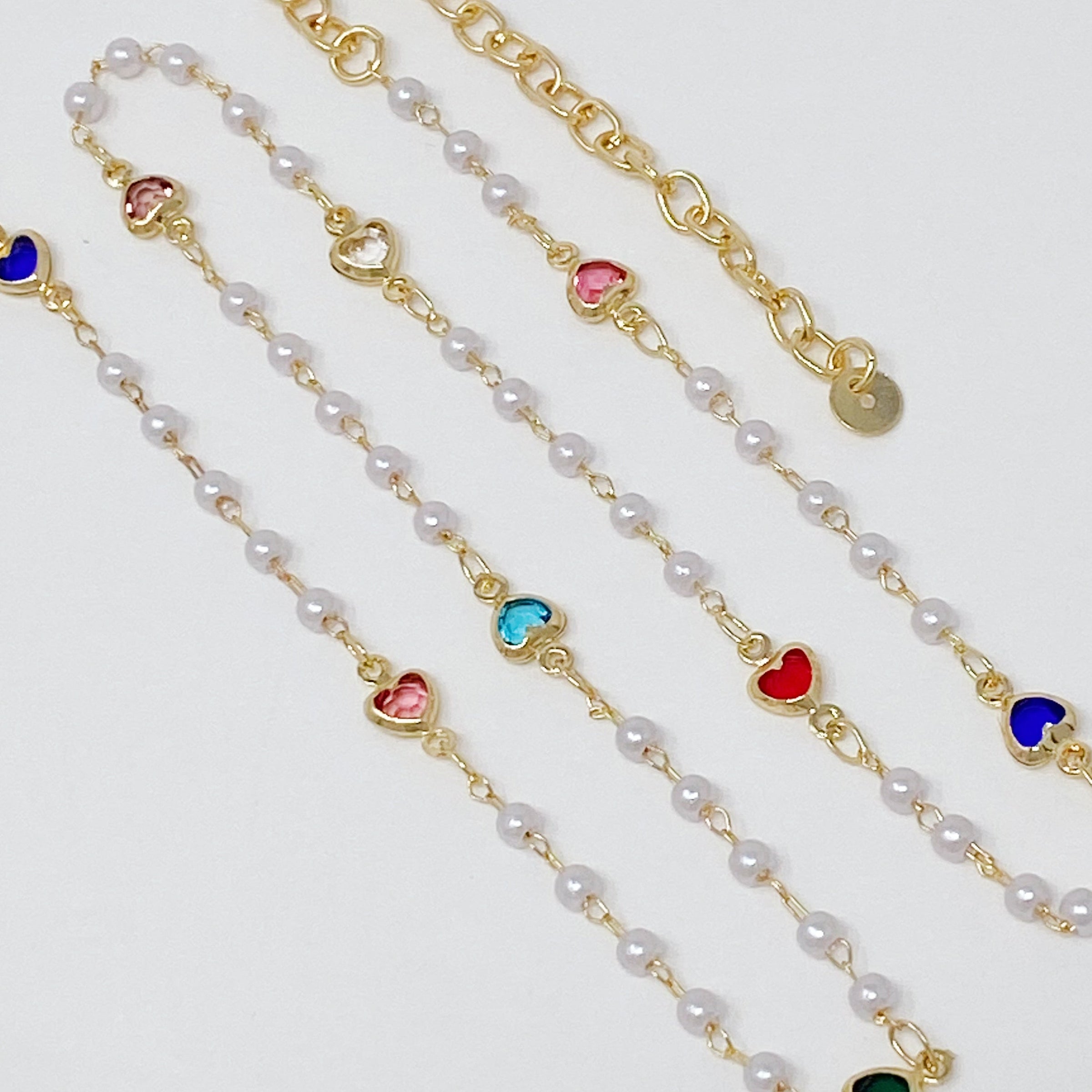 This Precious Mini Heart Pearl Chain Necklace is the perfect blend of modern and classic. It features delightful tiny hearts spaced out nicely around a pearl chain, creating a look that is both dainty and bold. With its cheerful and timeless design, you can wear it alone or layer it with other jewelry for a custom look.
