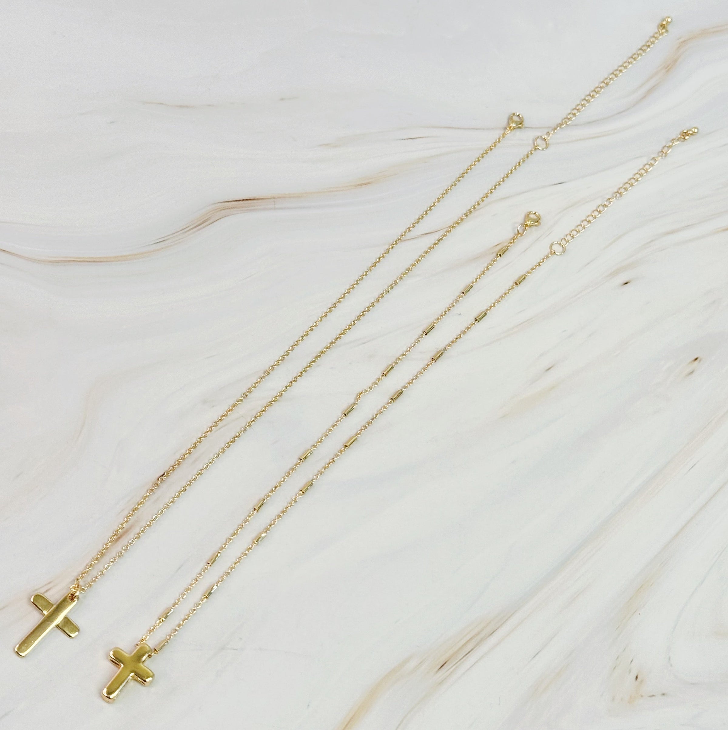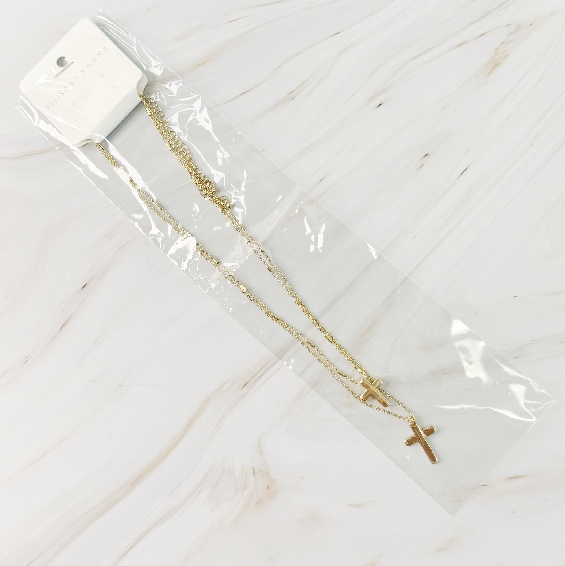 This set of two necklaces features a pretty chain and modern cross design. Versatile and stylish, these necklaces can be worn together for a complementing look or separately to make a statement. Elevate any outfit with this must-have accessory set.