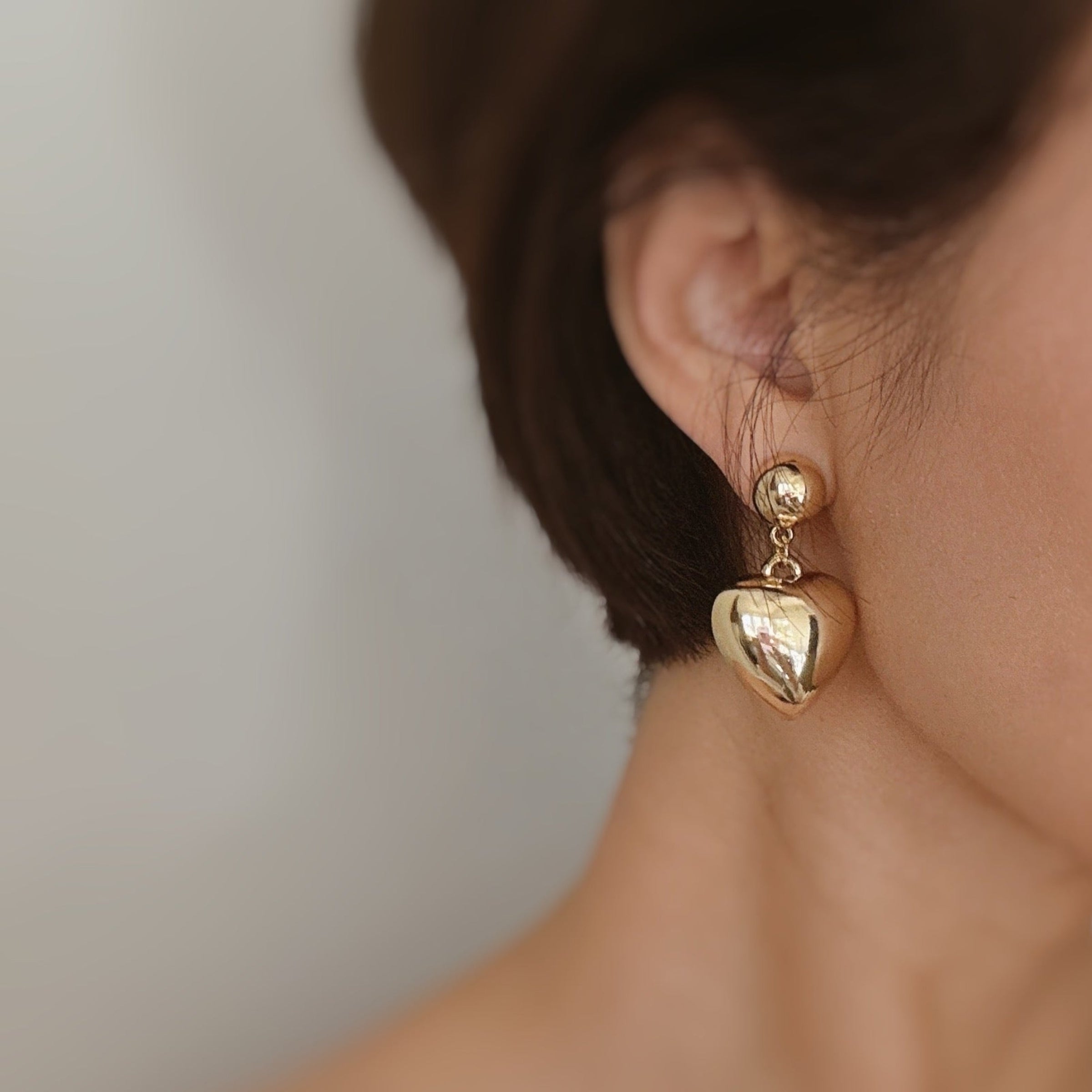 These earrings have a lovely puffy heart design and romantic dangle accent add a touch of sophistication to any outfit. Minimalistic and chic, these earrings are a must-have.