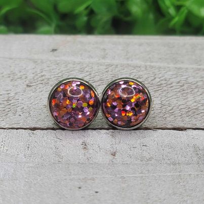 Purple, Orange and Black Confetti Dome Stud Earrings