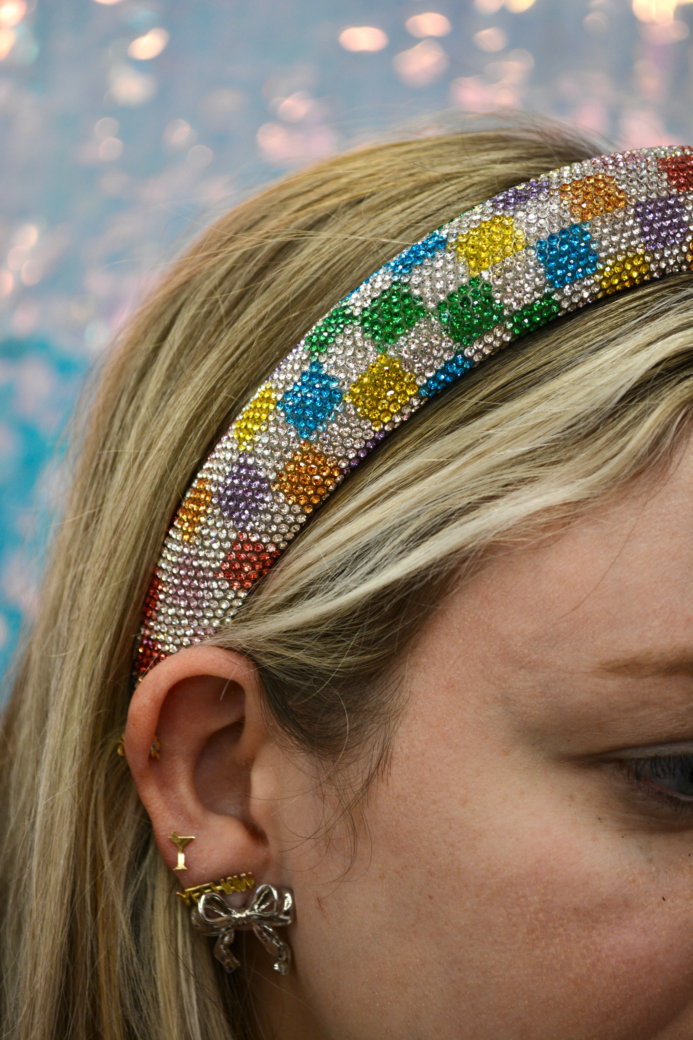 Add a pop of color to your look with our Rainbow Checkered Print Headband! This versatile accessory is perfect for adding some fun to your hair or keeping it out of your face. Switch up your style with this playful and vibrant headband.