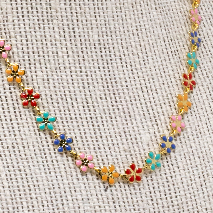 Looking for a chain that's dainty and adds a pop of color to your outfit? Well, look no further because we have the perfect one for you. Our Rainbow Daisy Chain is simple, adorable, and so colorful!