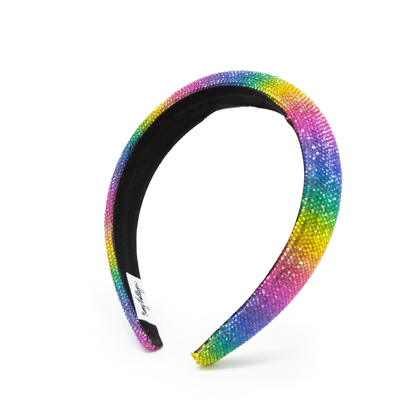 Brighten up any outfit with this playful Rainbow Rhinestone Headband! With its shimmering rhinestones arranged in a rainbow pattern, this headband adds a touch of fun and sparkle to any look. Perfect for music festivals, parties, or just adding some colorful charm to your everyday style.
