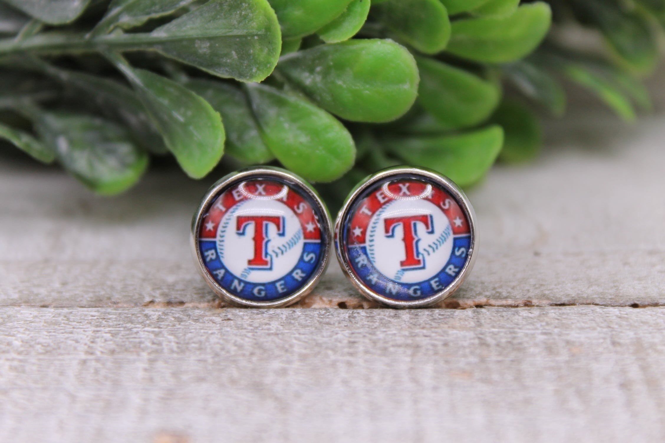 Rangers Baseball || 12mm Glass Stud Earrings || Hypoallergenic