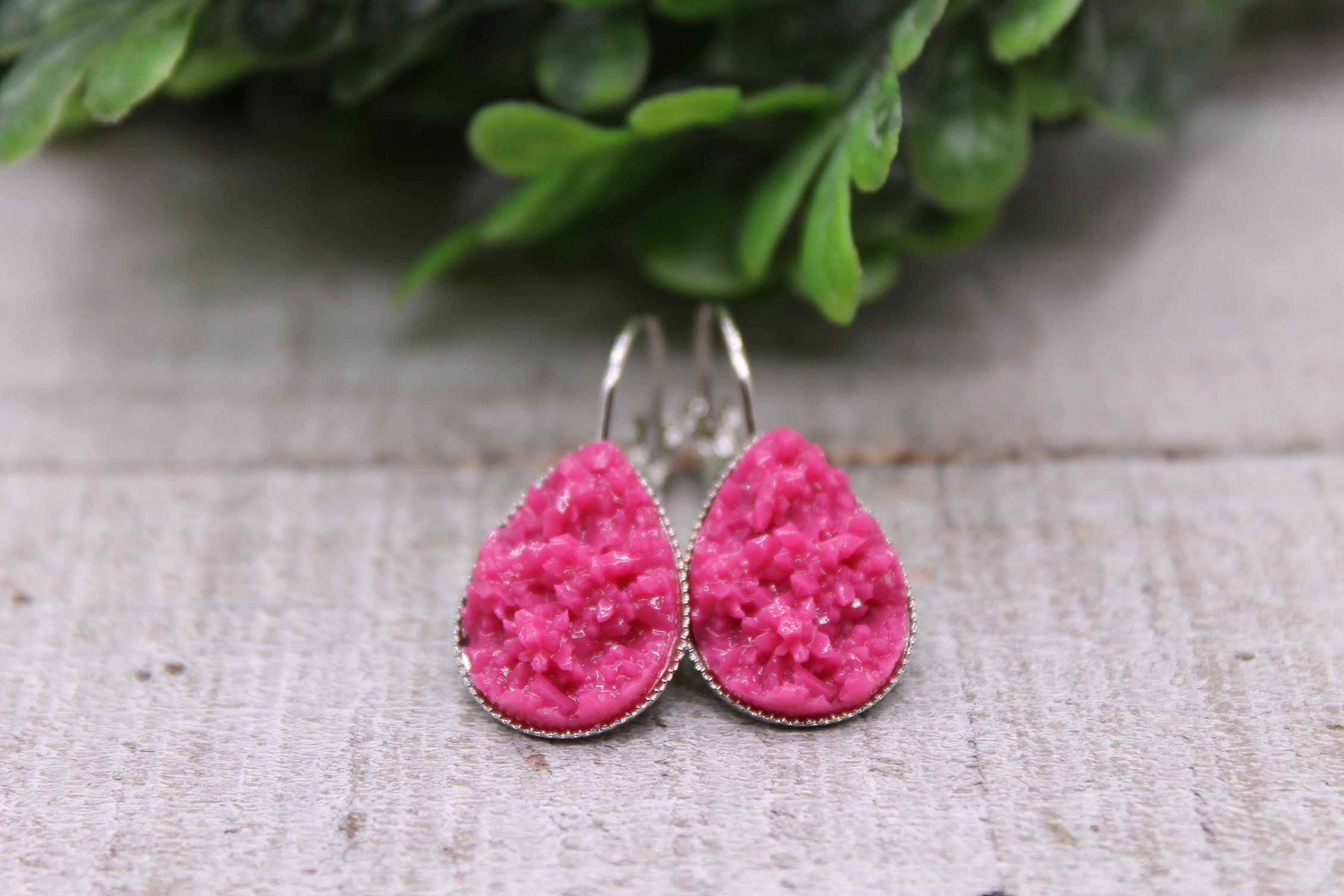 Rose Pink Druzy || Teardrop French Lever Earrings