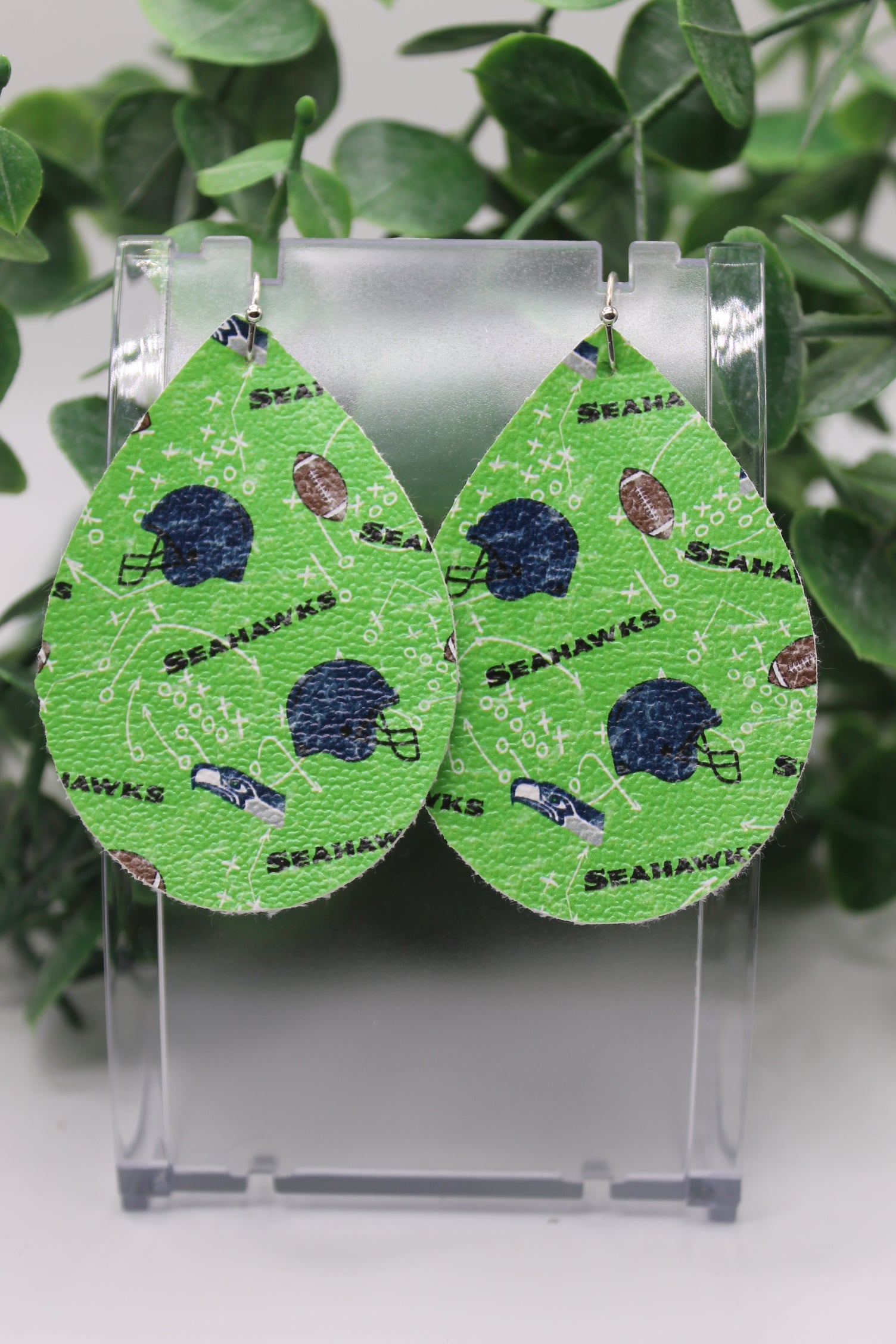 Sea Hawks Football || Teardrop Faux Leather Earrings || Hypoallergenic