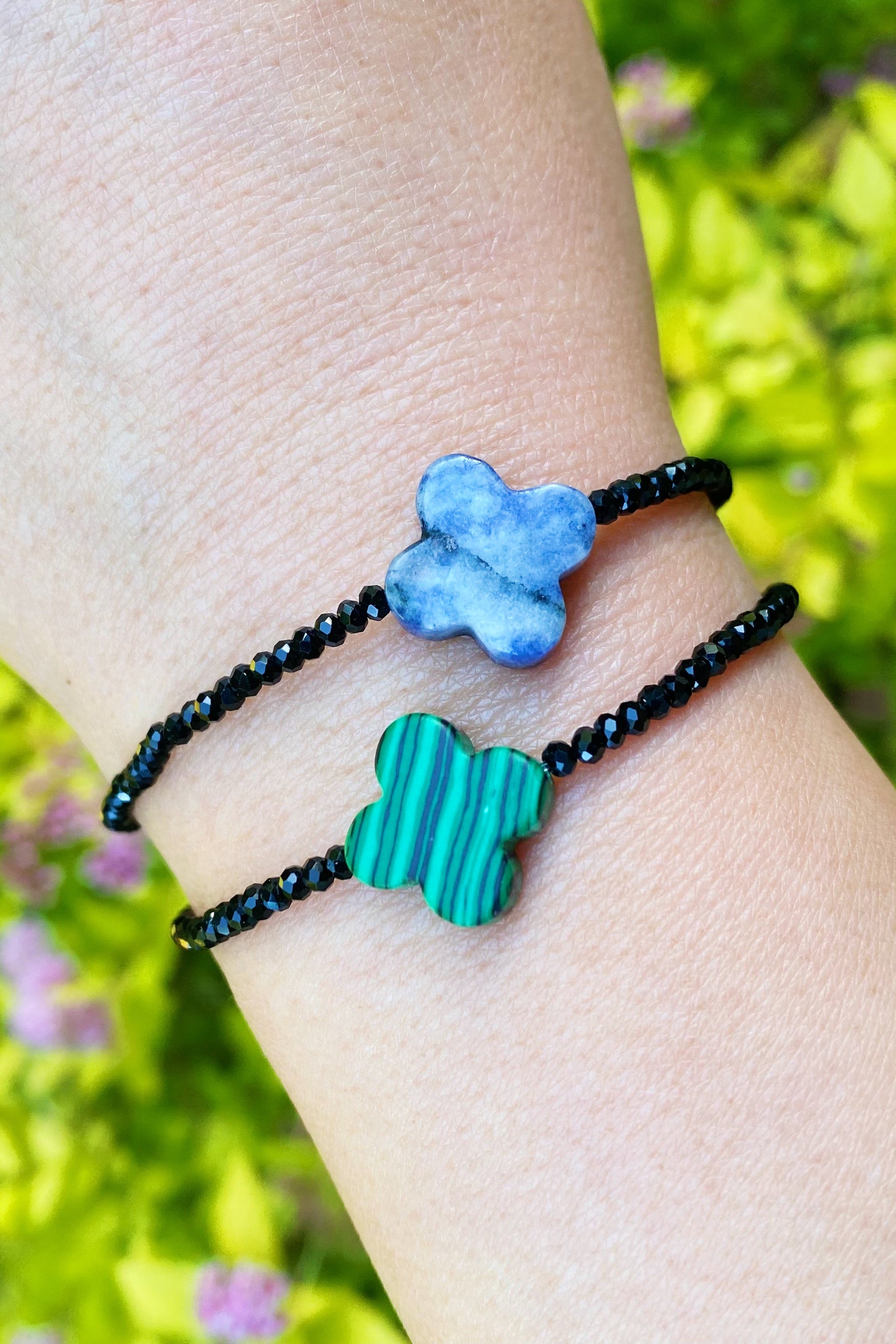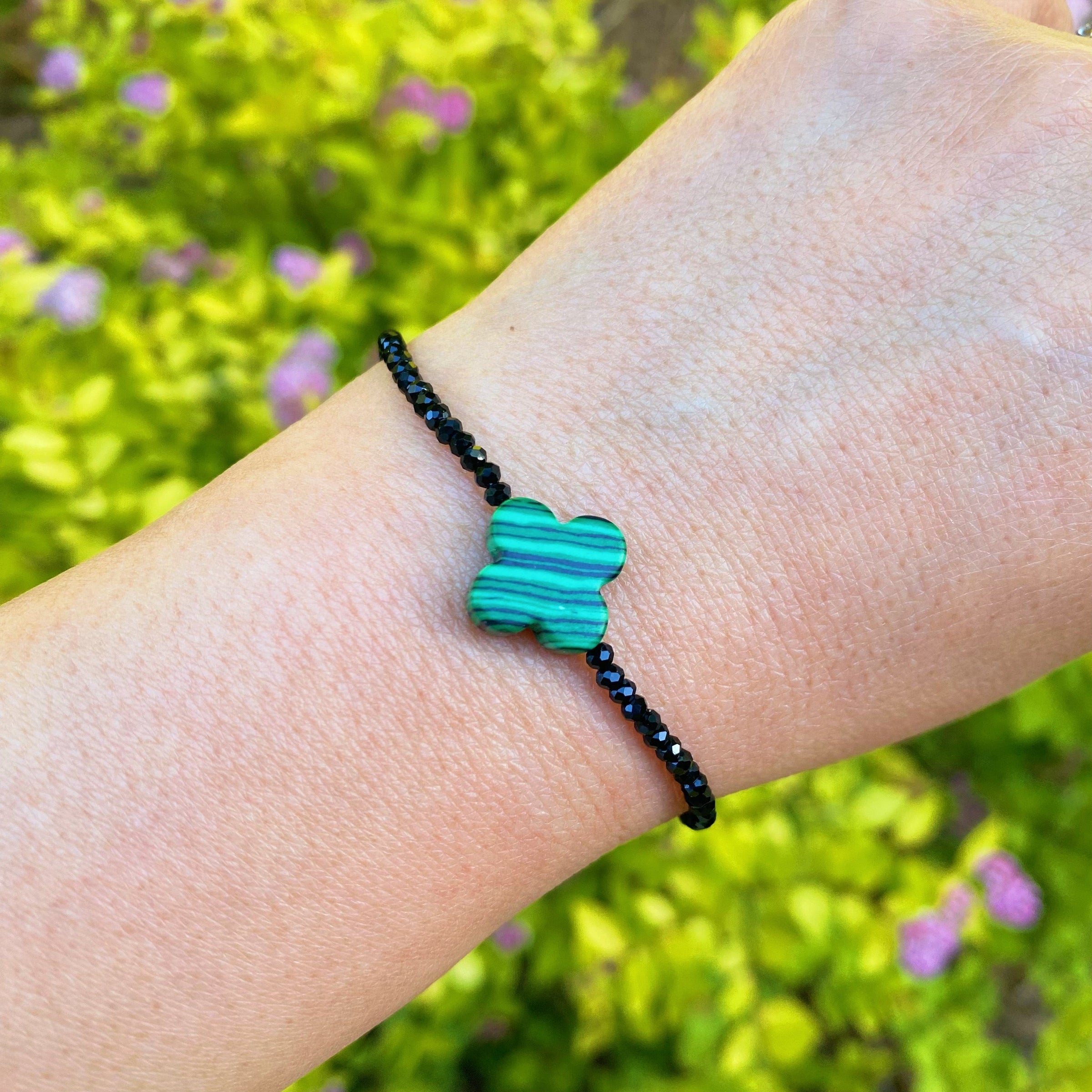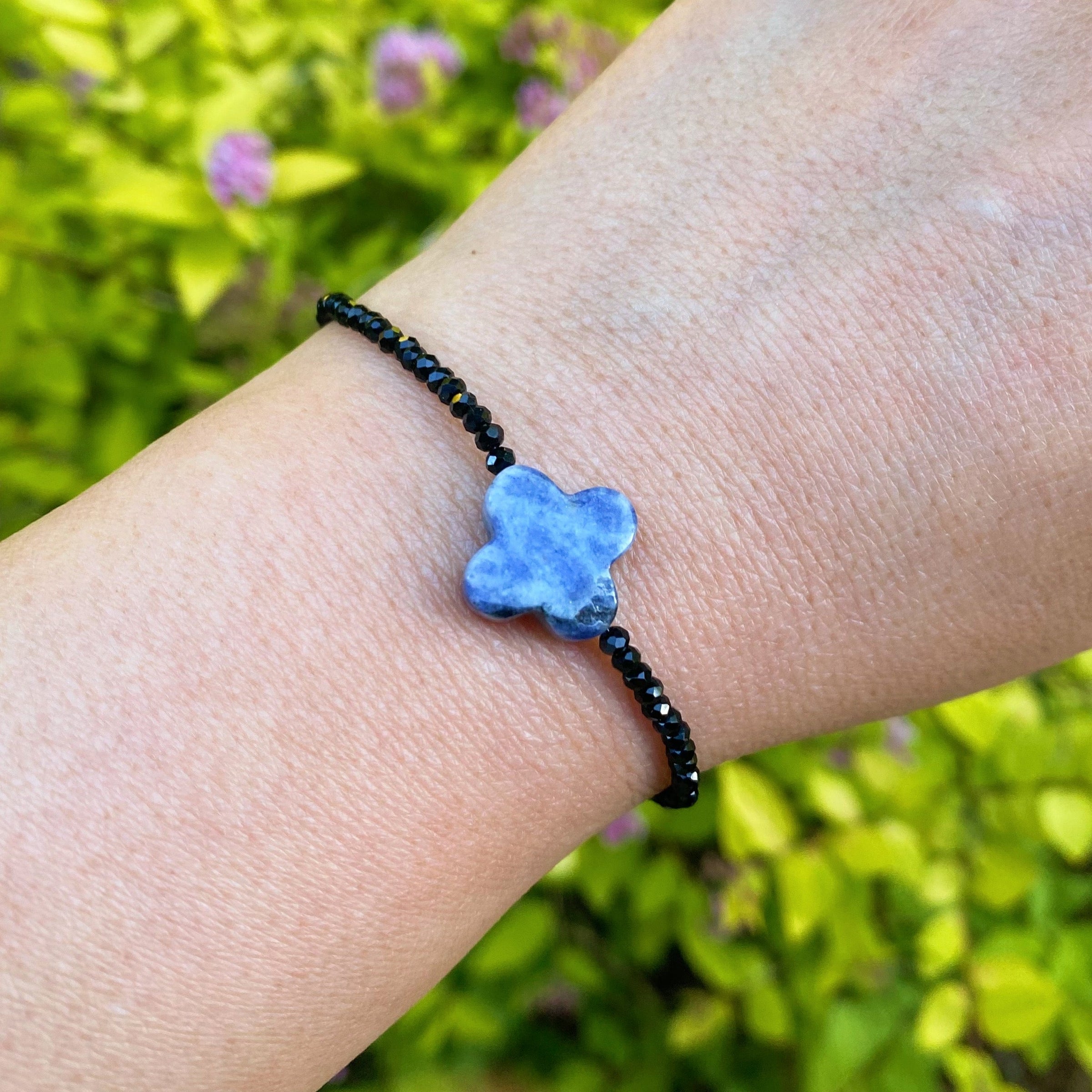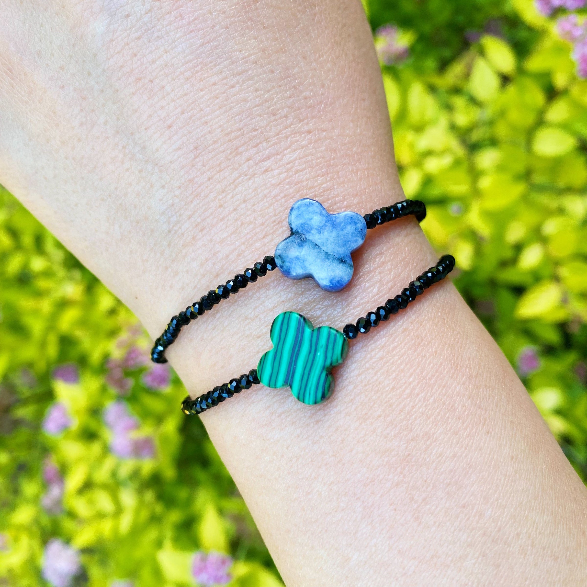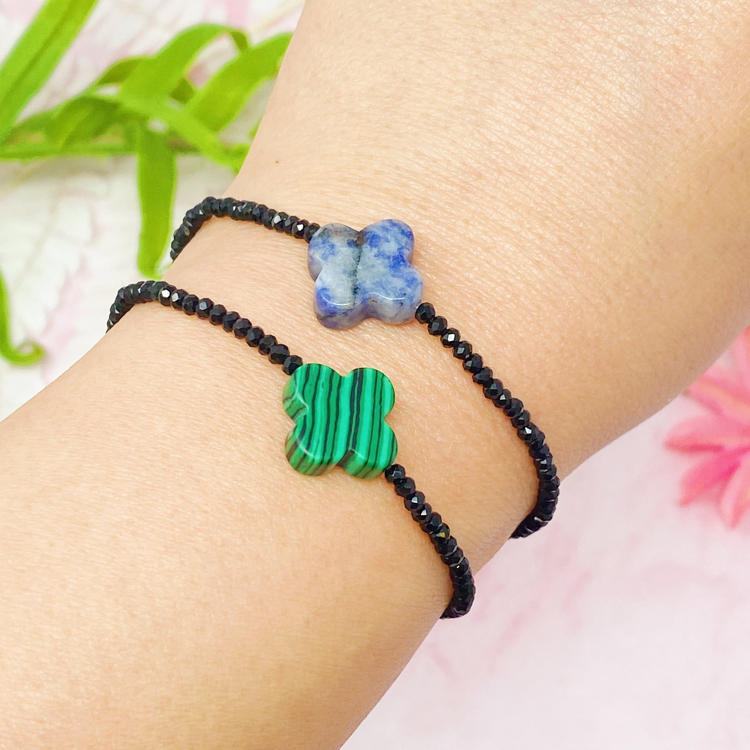 This Semi-Precious Rounded Cross Stretch Bracelet offers the perfect blend of comfort and style. Its stretchable design is comfortable to wear, and the tiny black glass beads create a stunning contrast with the beautiful natural stone center pendant. An ideal accessory for any wardrobe, this stretch bracelet can be worn alone or layered with other bracelets for an eye-catching look.