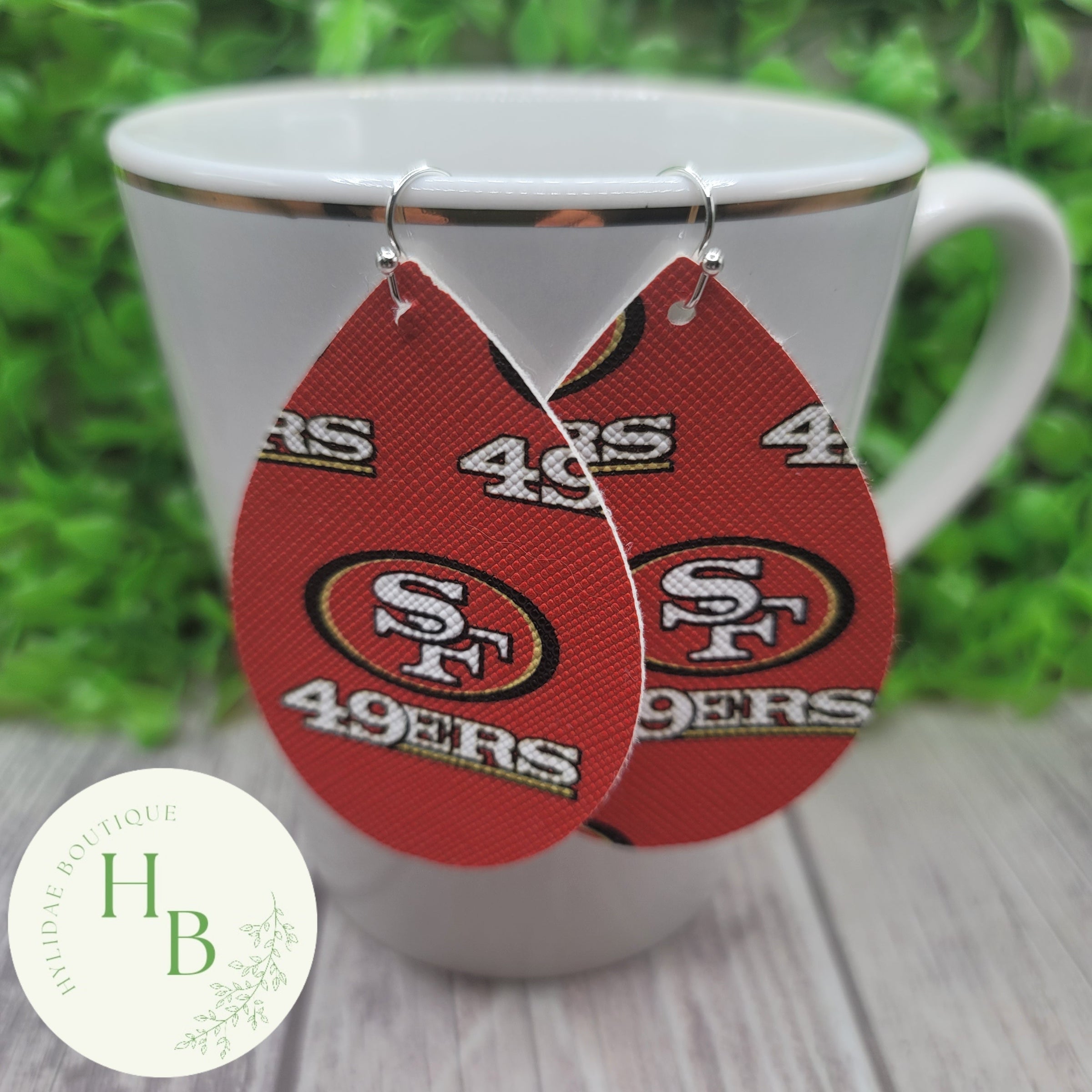 SF 49ers || Faux Leather Teardrop Dangle Earrings || Single-Sided
