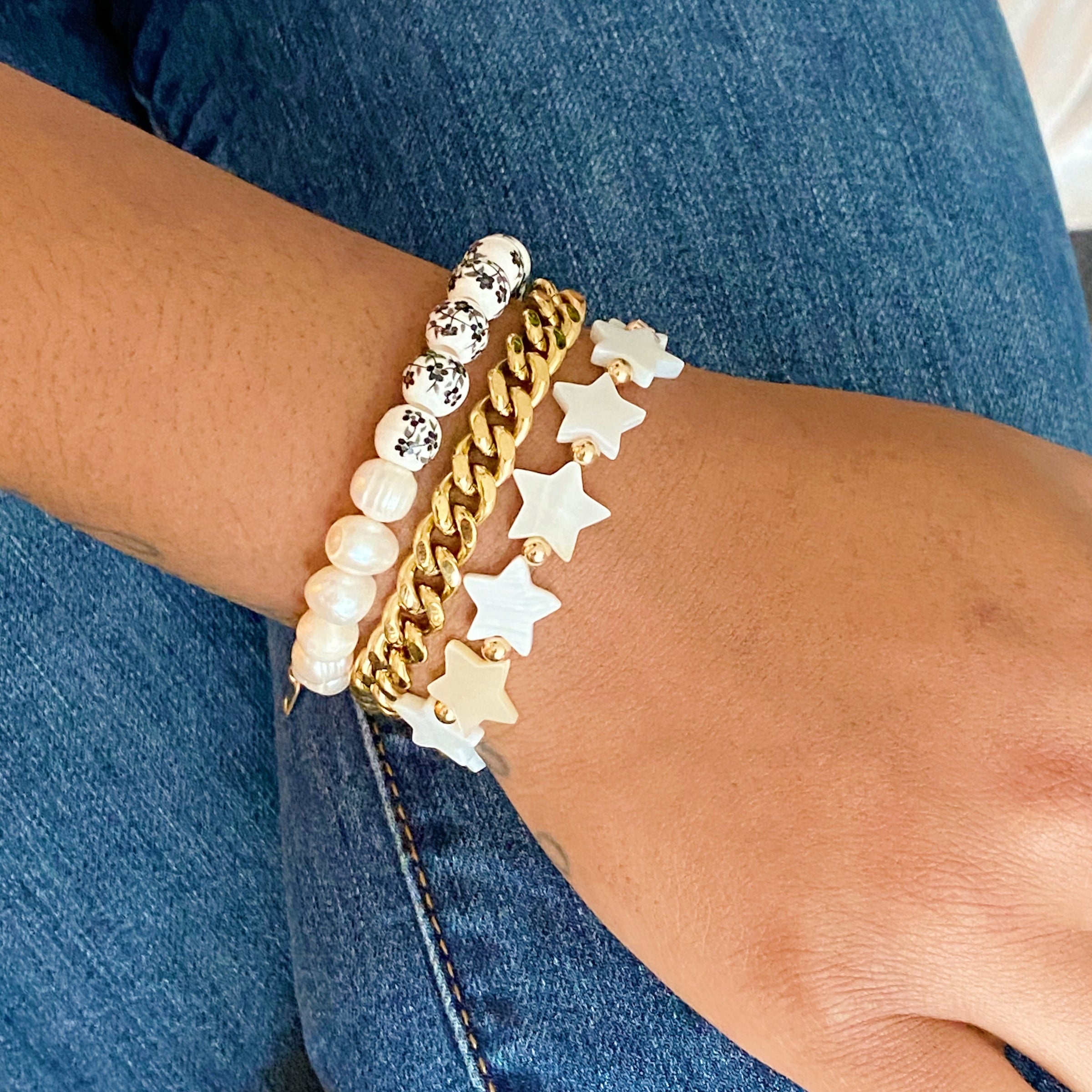 Star shape shell beads are so adorable! Easy to put on in stretch bracelet.