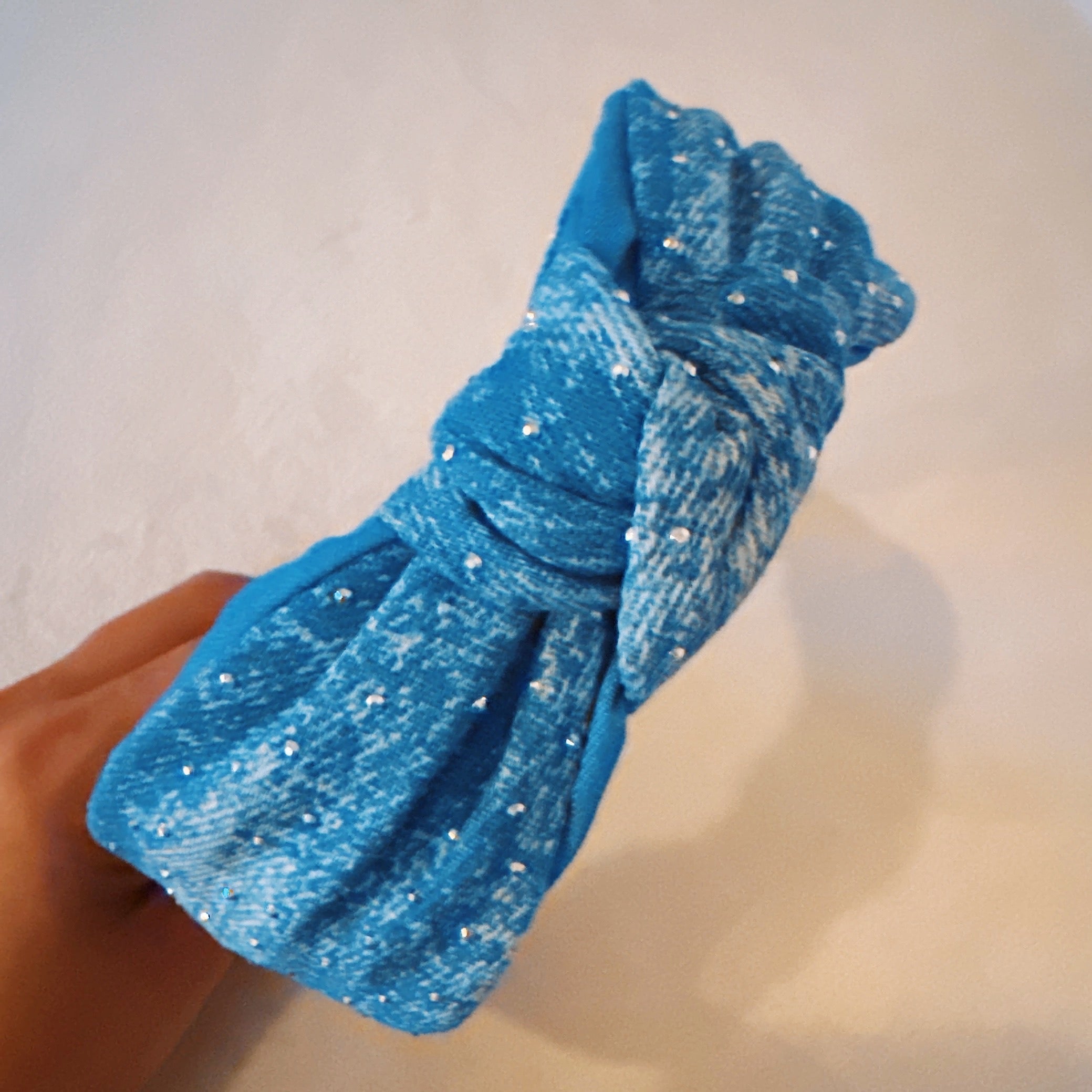 This headband features a unique design with a touch of shine and distress, adding a stylish touch to any outfit. comfortable to wear with soft edges.