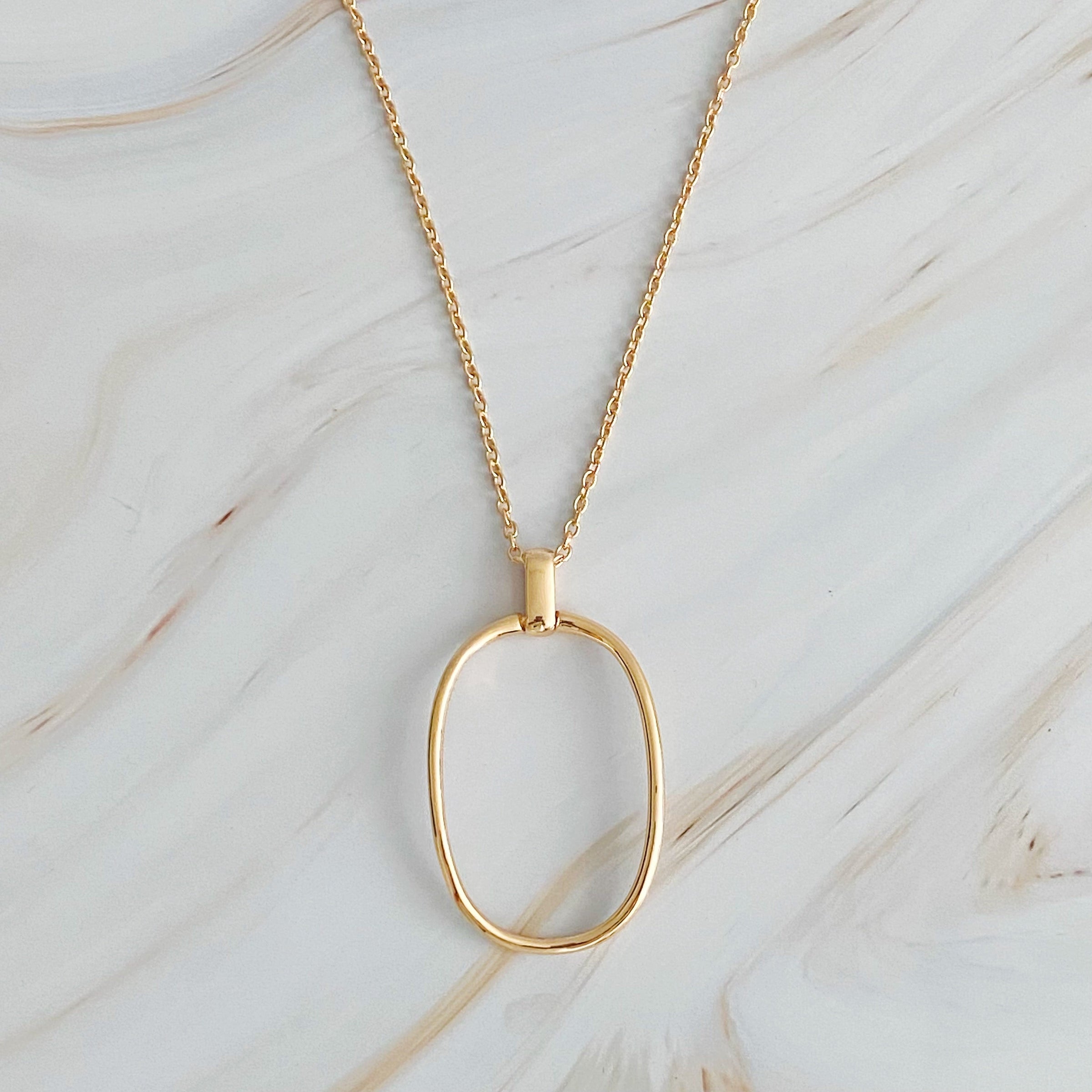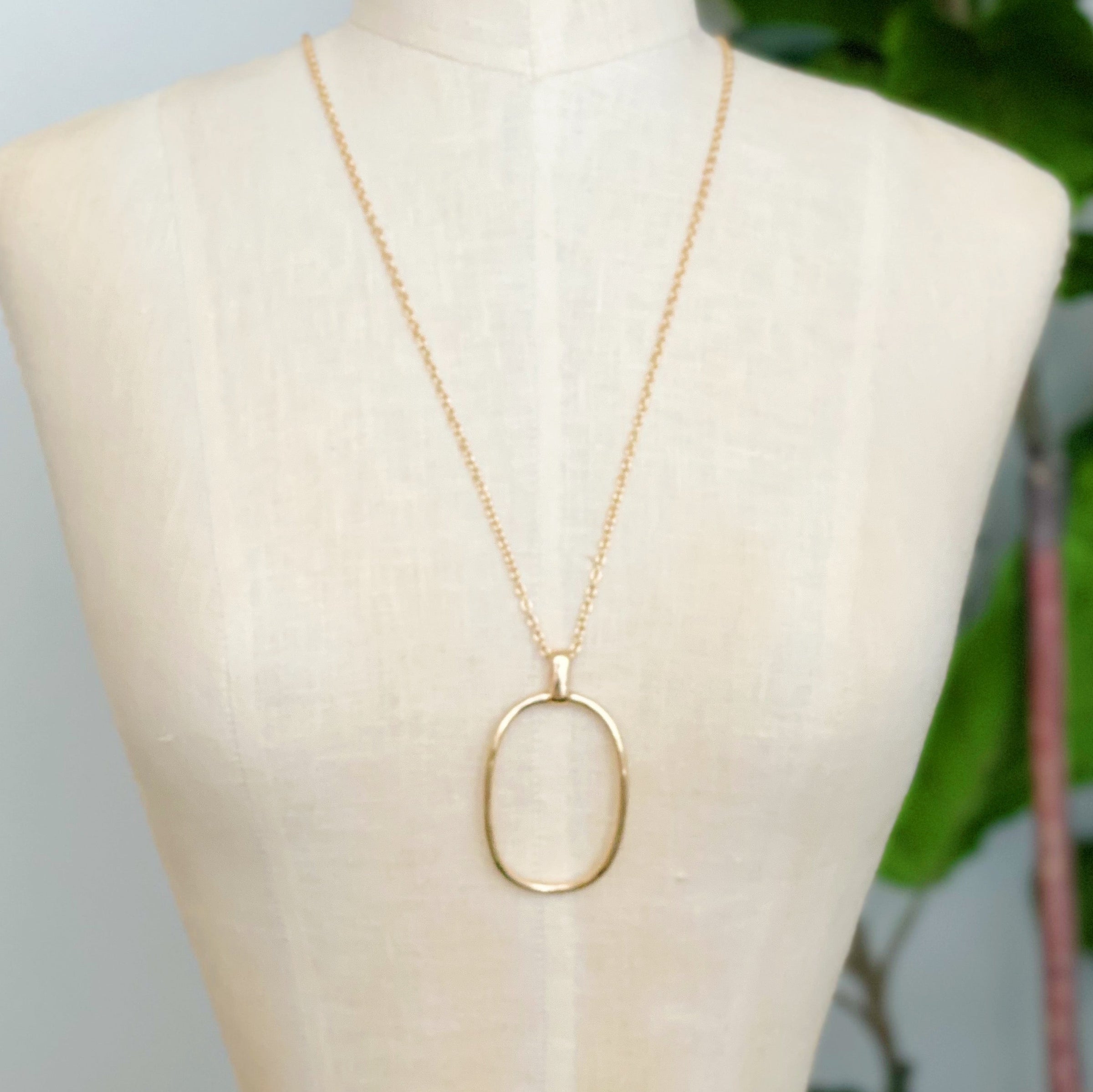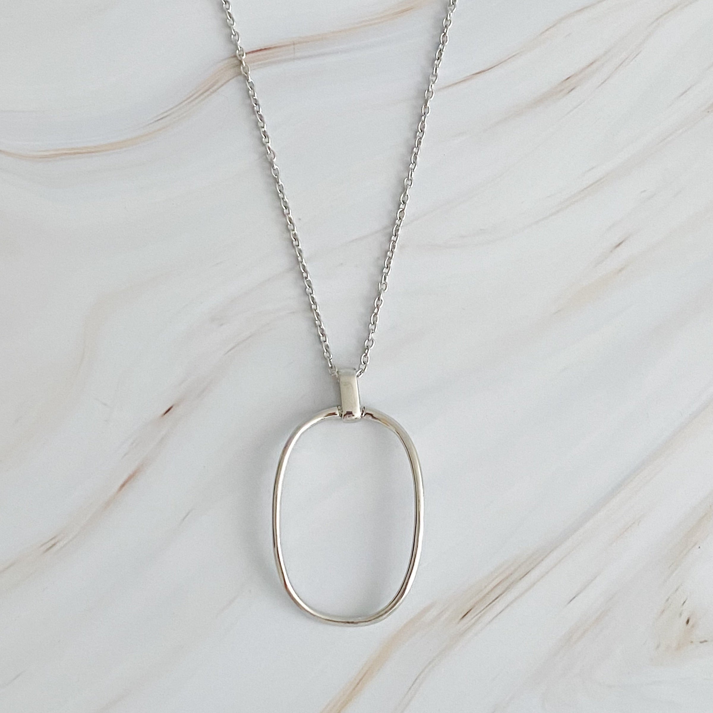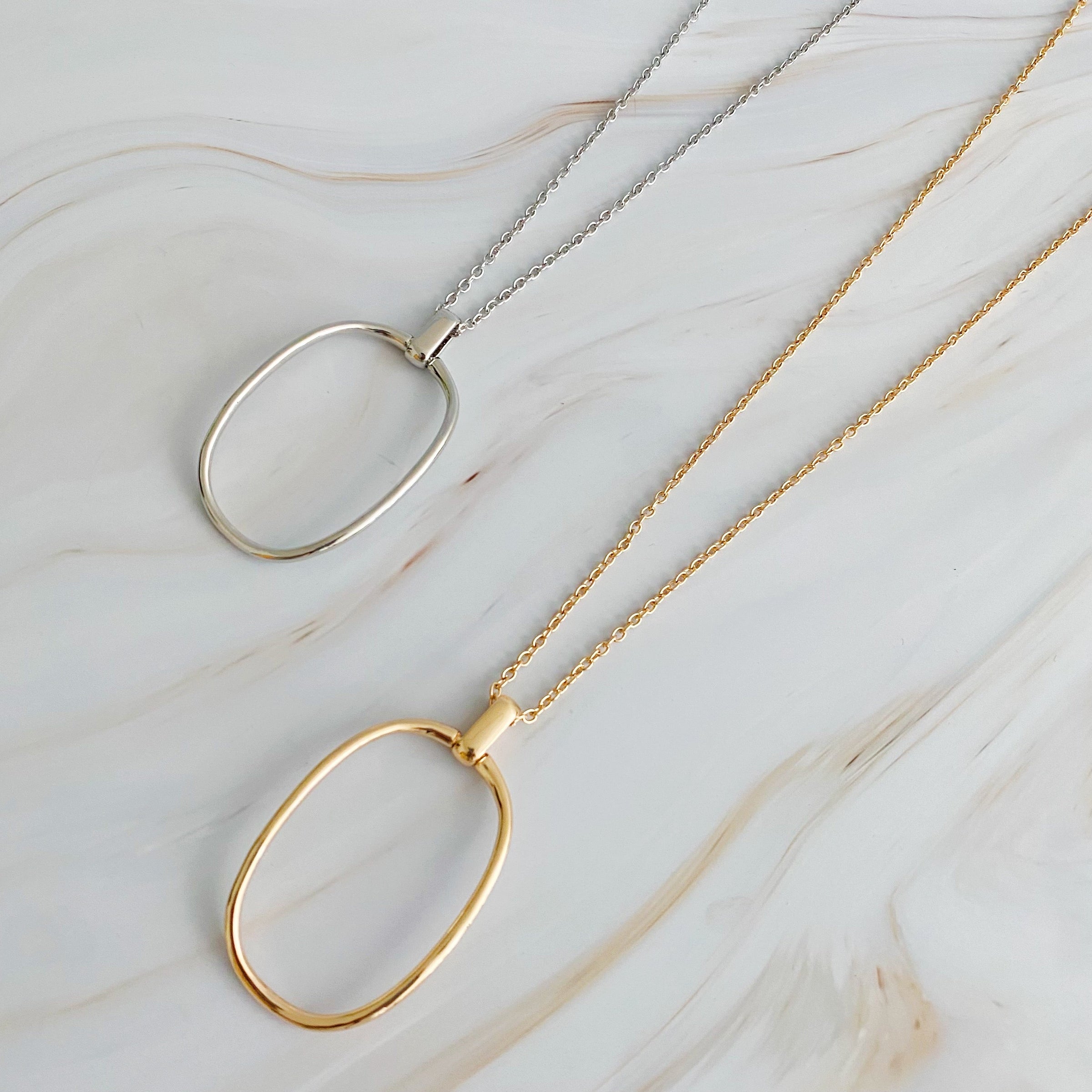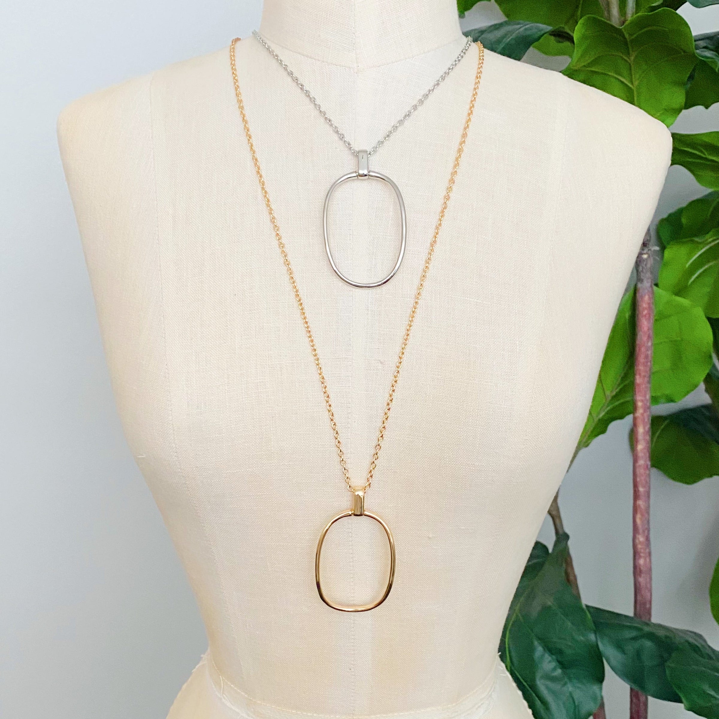 This Sleek Oval Pendant Long Necklace adds a sophisticated touch to any look. Featuring a chic and stylish long chain with a sleek bold pendant, this versatile piece is great for creating a range of looks—from casual to professional. Wear it alone or layer with other pieces for a unique style.