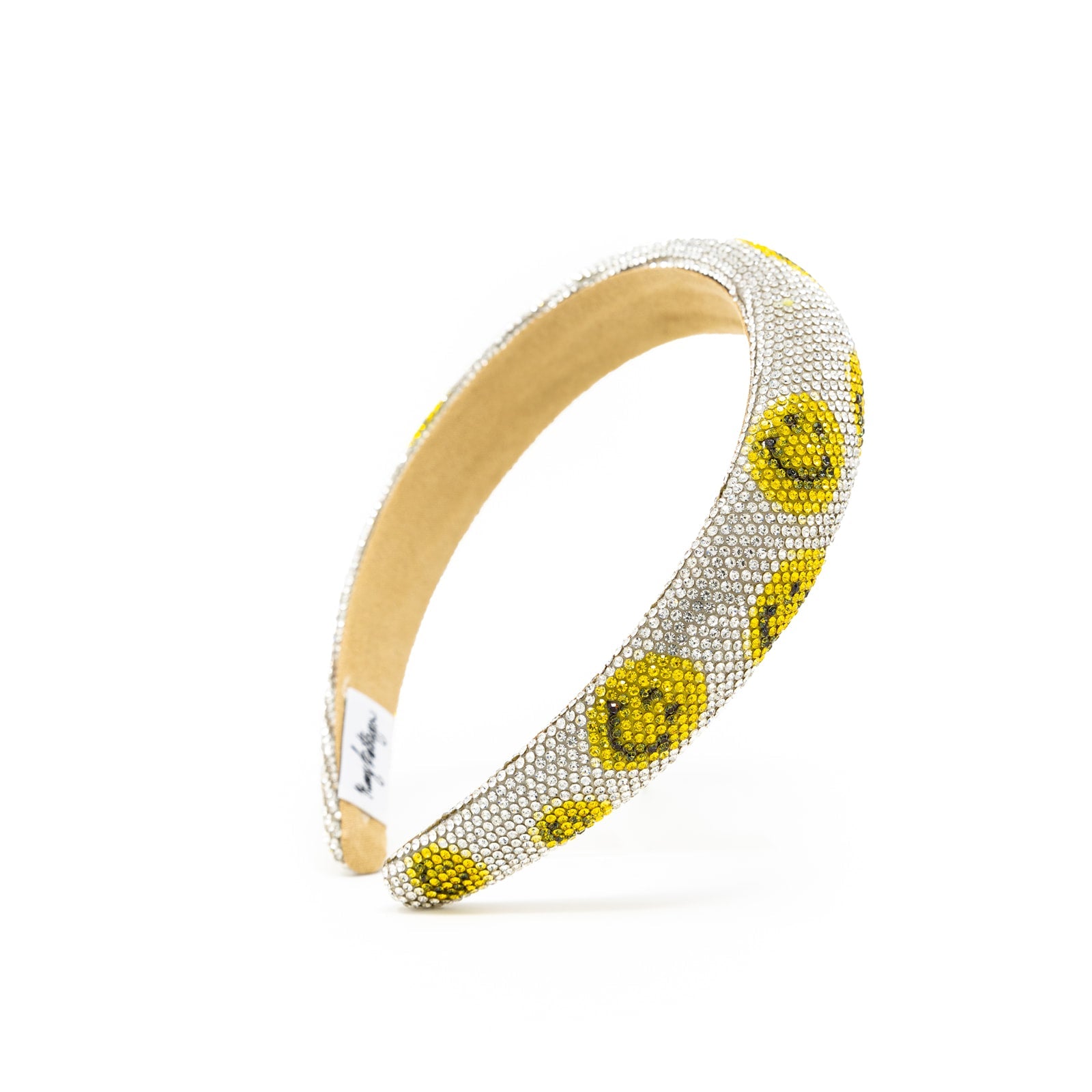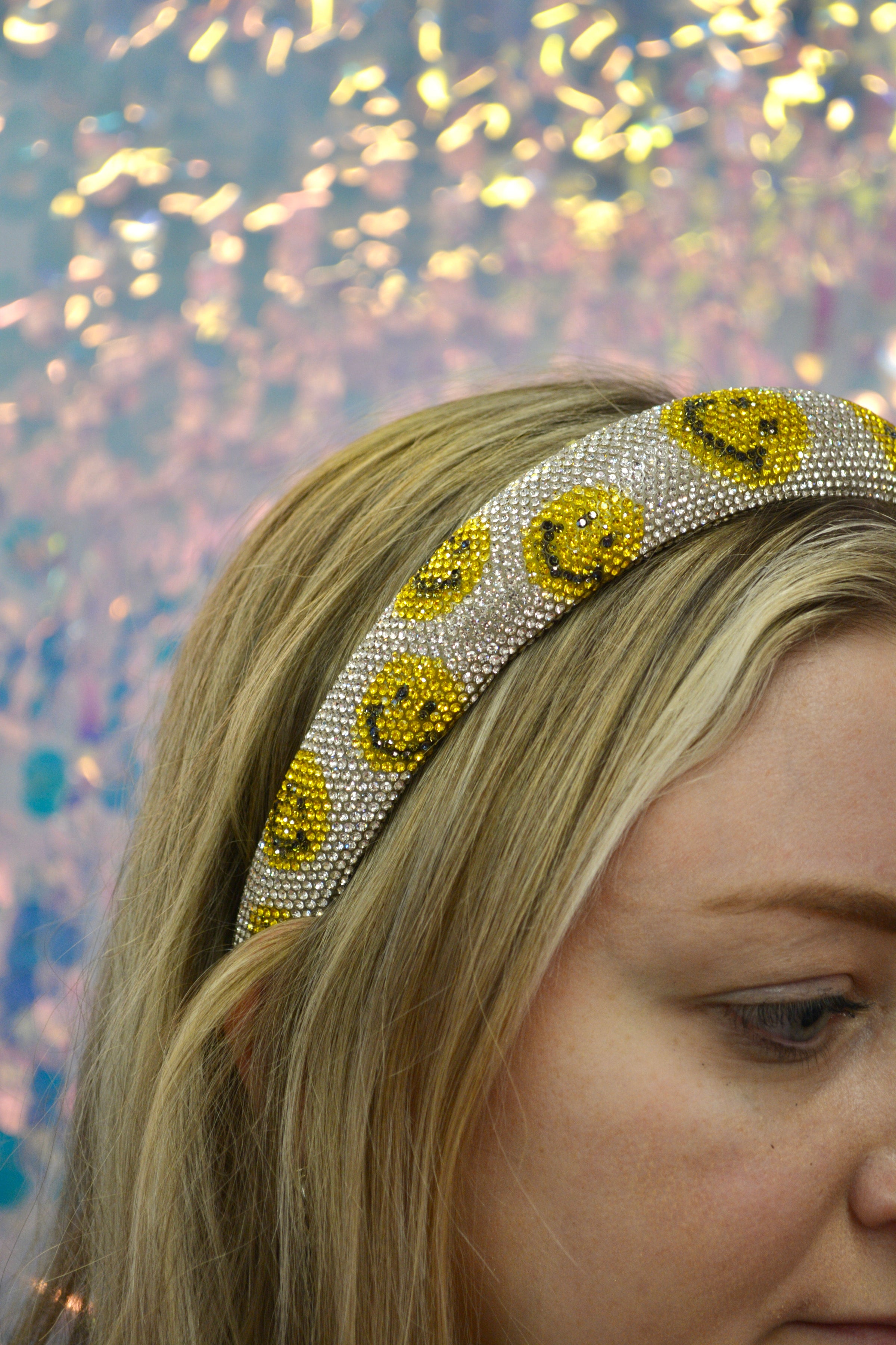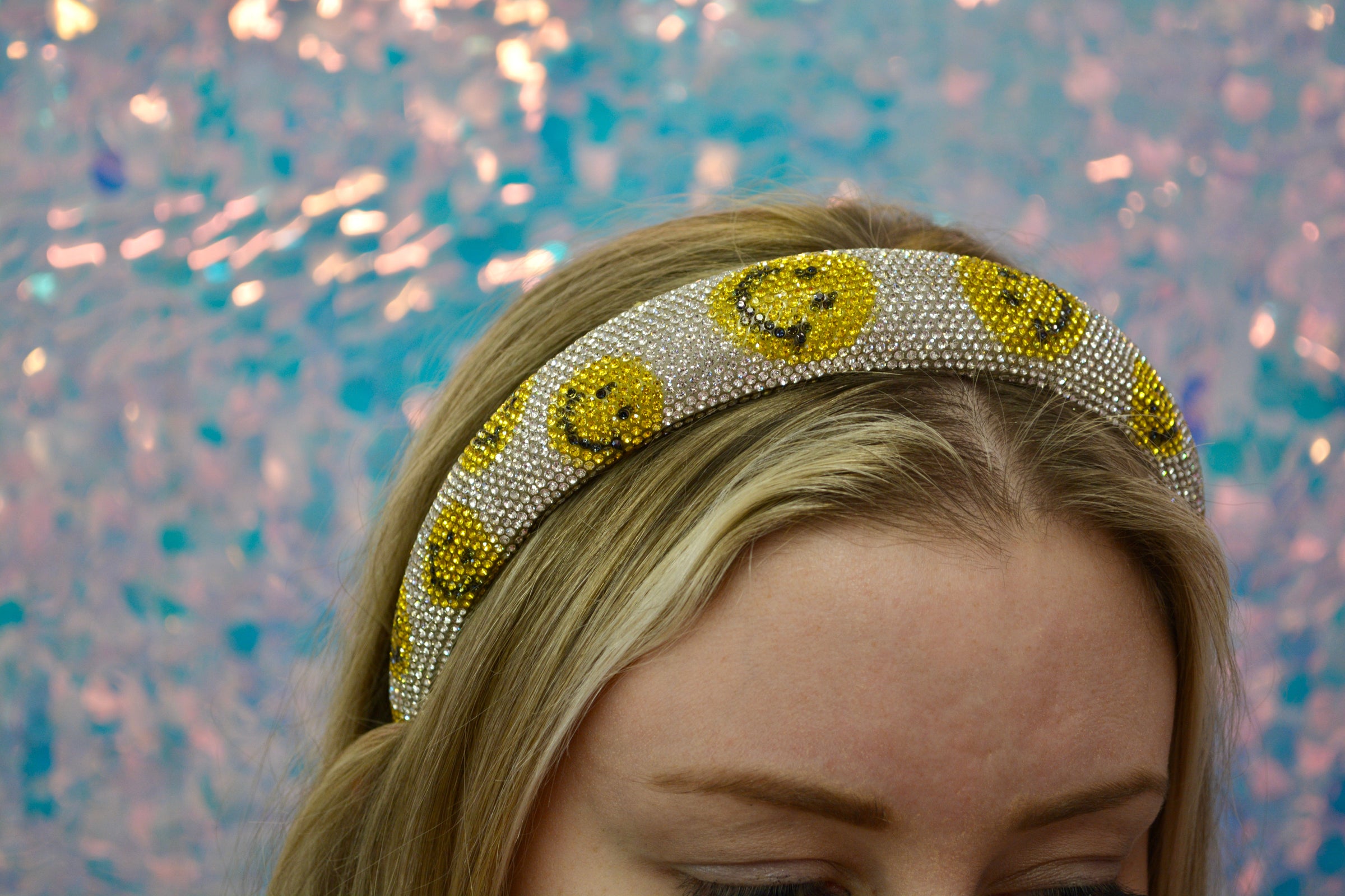 Add some sparkle and fun to your look with our Smiley Face Rhinestone Headband! This eye-catching accessory will surely bring a smile to your face (pun intended). Perfect for any casual or dressy occasion, it's a playful addition to any outfit.