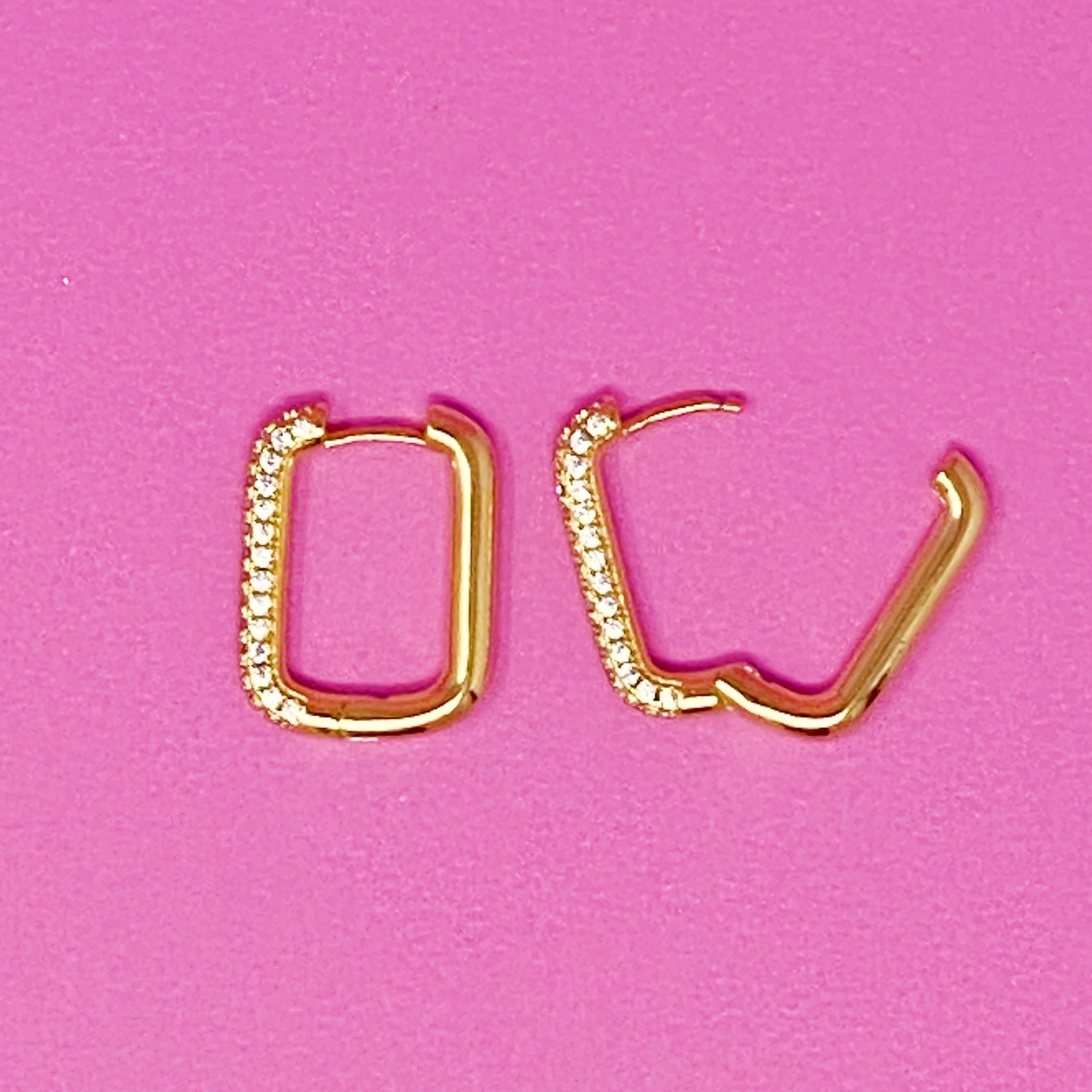 Gorgeous, sparkling hoop earrings. So chic in rectangle shape, perfect size for everyday, dressy enough with sparkly shine!