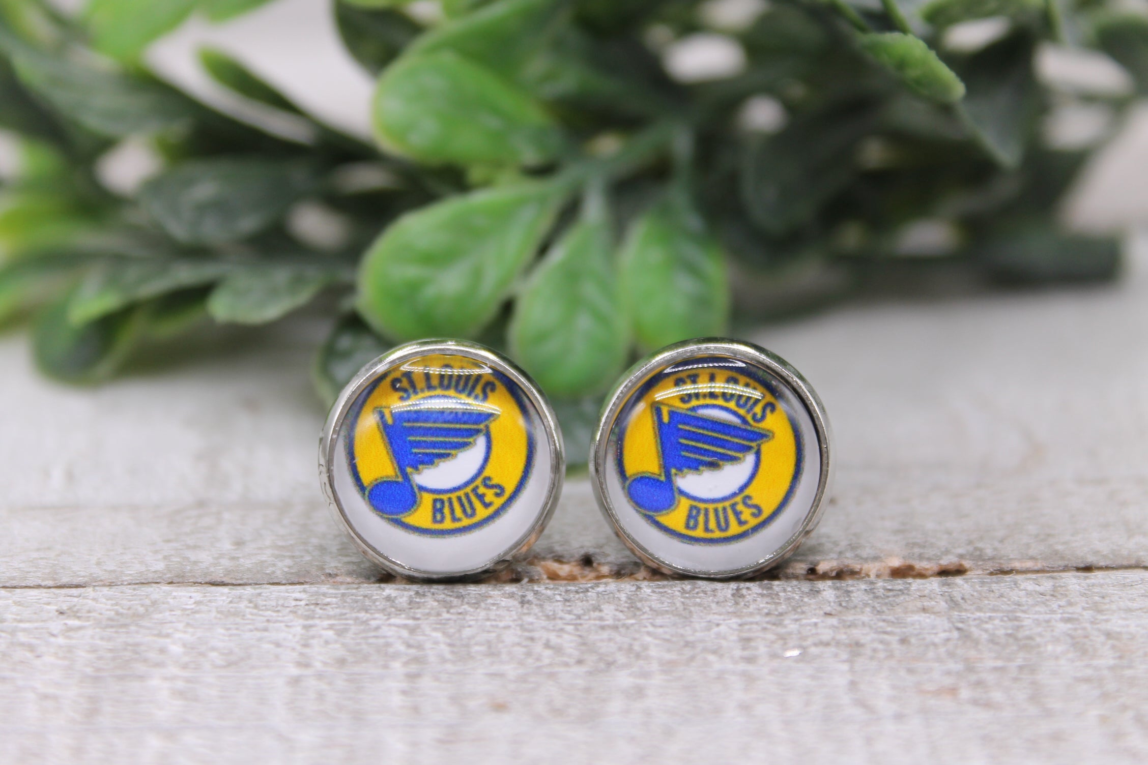 St Louis Blues Hockey Circle || 12mm Glass Stud Earrings || Hypoallergenic