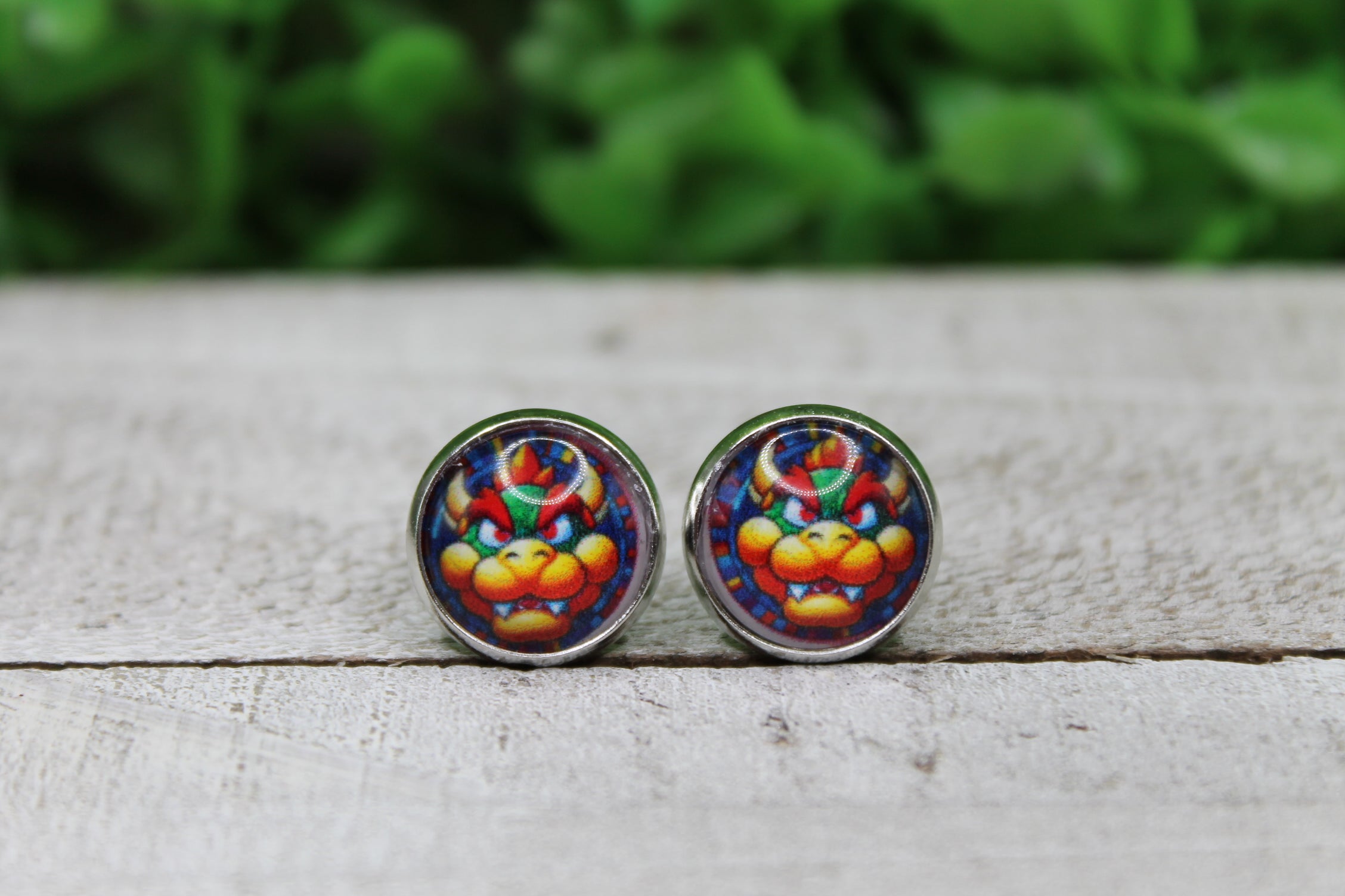 Stained Glass Bowser 12mm Glass Stud Earrings