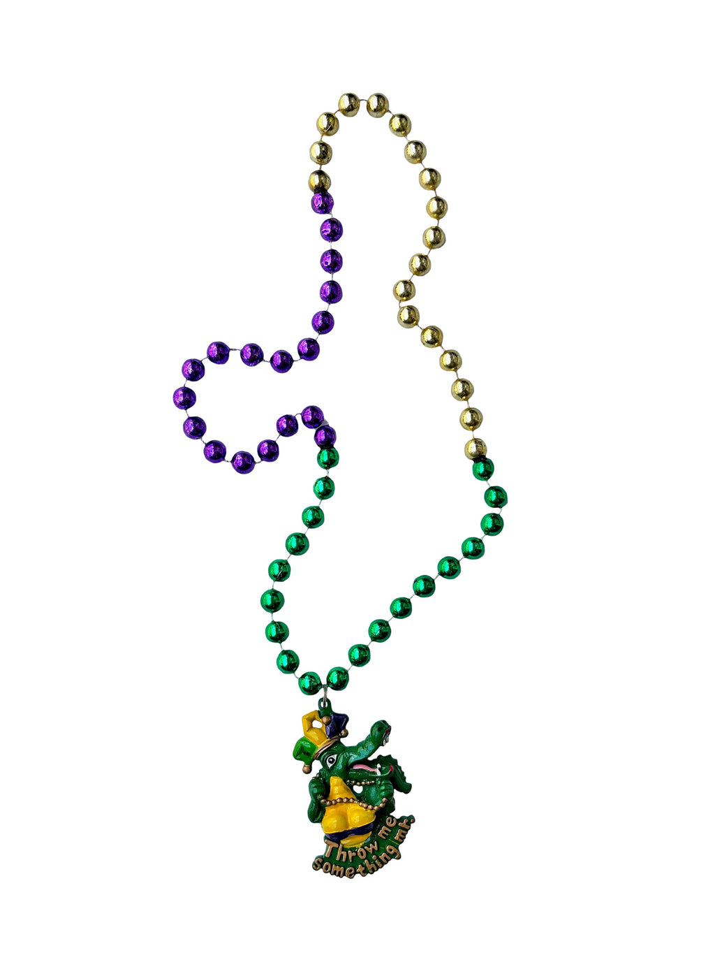 "Throw Me Something Mr." Alligator on Purple, Green, and Gold Specialty Bead