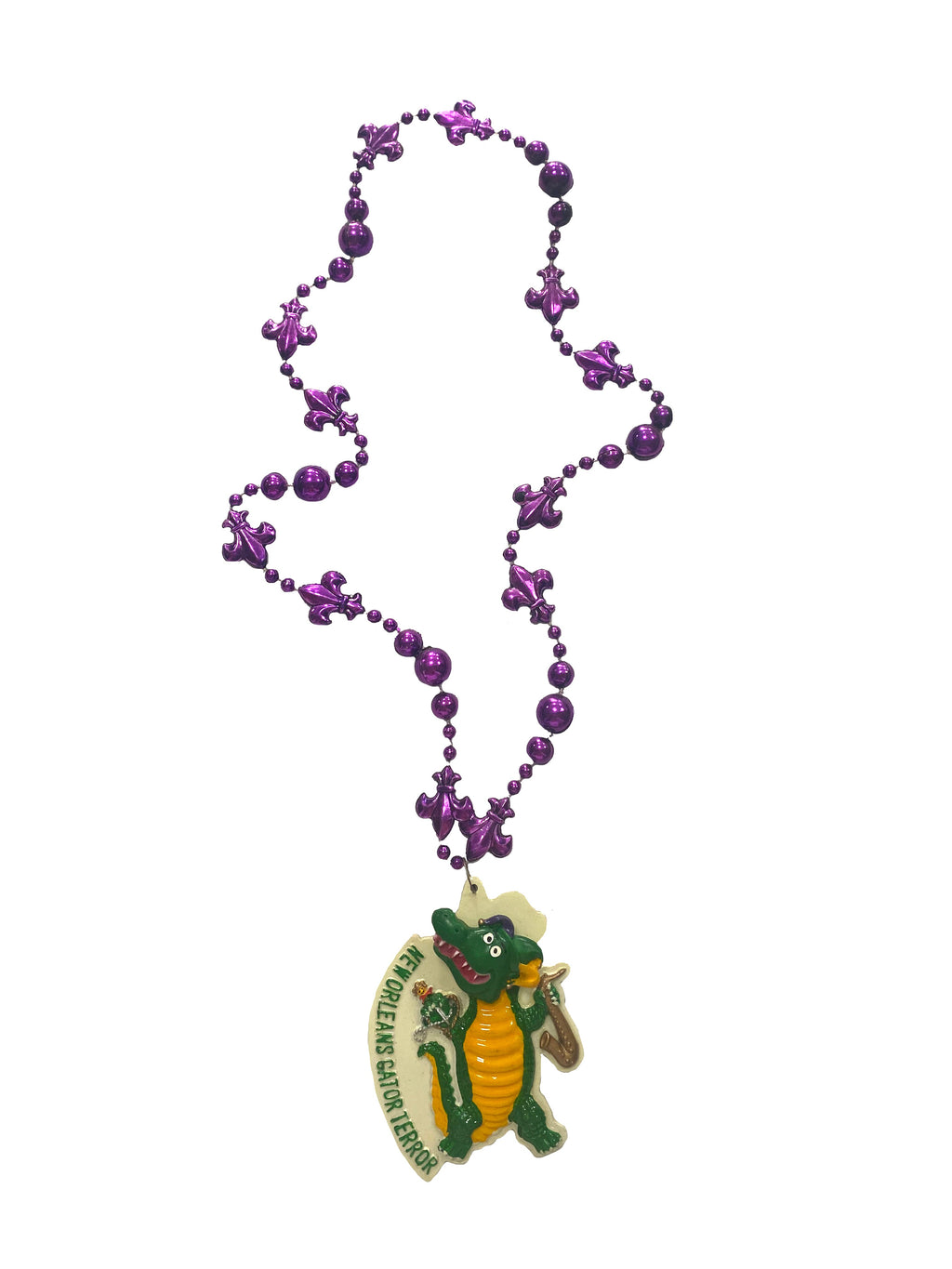 "New Orleans Gator Terror" Medallion on Purple Fleur De Lis Specialty Bead