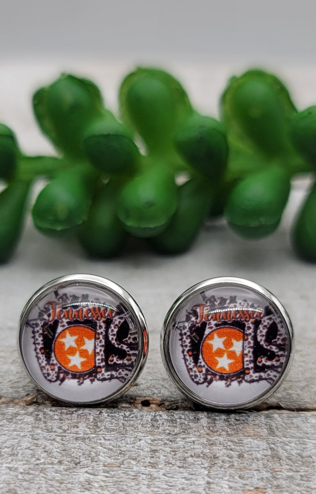 TN VOLS || 12mm Glass Stud Earrings || Hypoallergenic