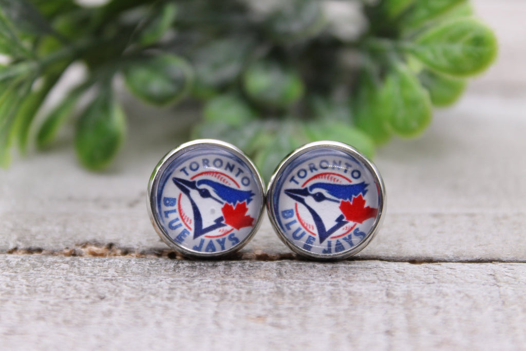 Toronto Blue Jays Baseball || 12mm Glass Stud Earrings || Hypoallergenic