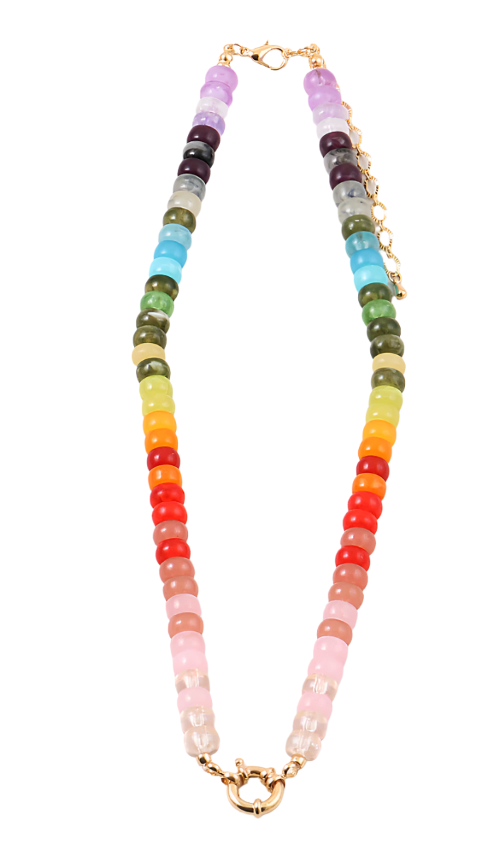 Toggle Charm Necklace - Rainbow Multi Beads