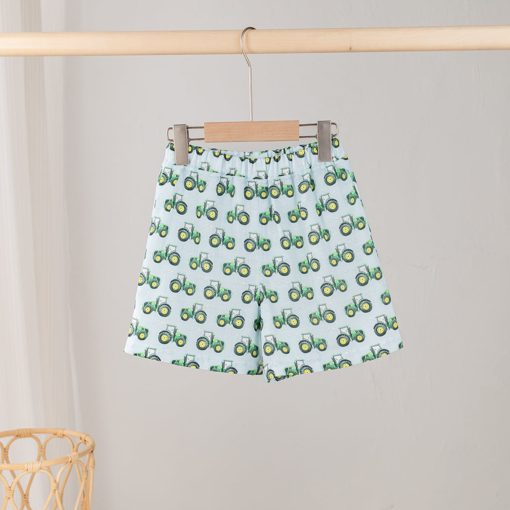 Toot, Toot, Tractor! Organic Muslin Shorts (Pre-Order Arriving Spring 2026)