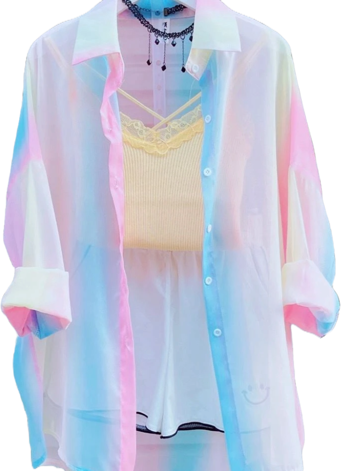 Title: Pastel Dream Oversized Sheer Button-Down Blouse