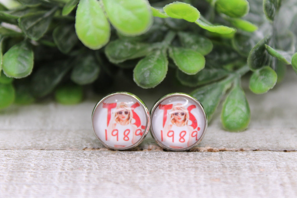 Turquoise and Sunflowers 12mm Glass Stud Earrings || Hypoallergenic